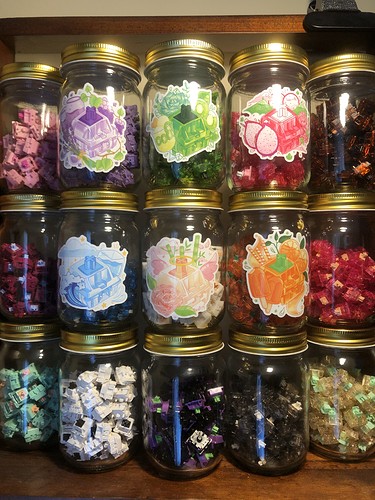 I very rarely use anything larger than a 68-key, so I use 12oz mason jars for some regional flavor to my storage. ( Howdy from moonshine country! ) If you’re into the mason jars but want to store enough switches for a full-size and a few extra, 14oz capacity should have you covered.