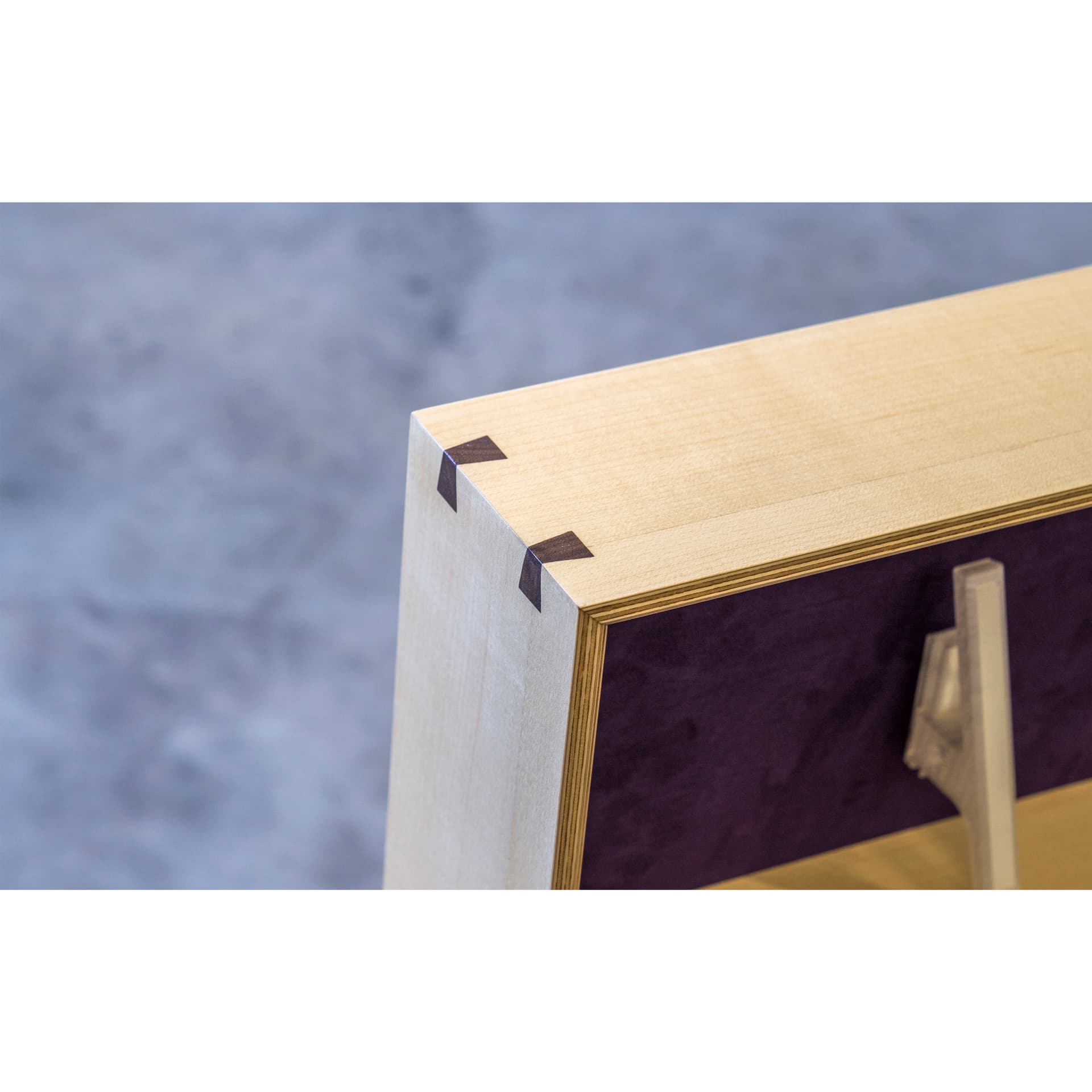 The miter work on those corners is gorgeous, and you clearly used some really nice no-void veneered ply. The dovetail splines are just the cherry on top. Nice, nice work.