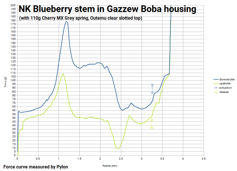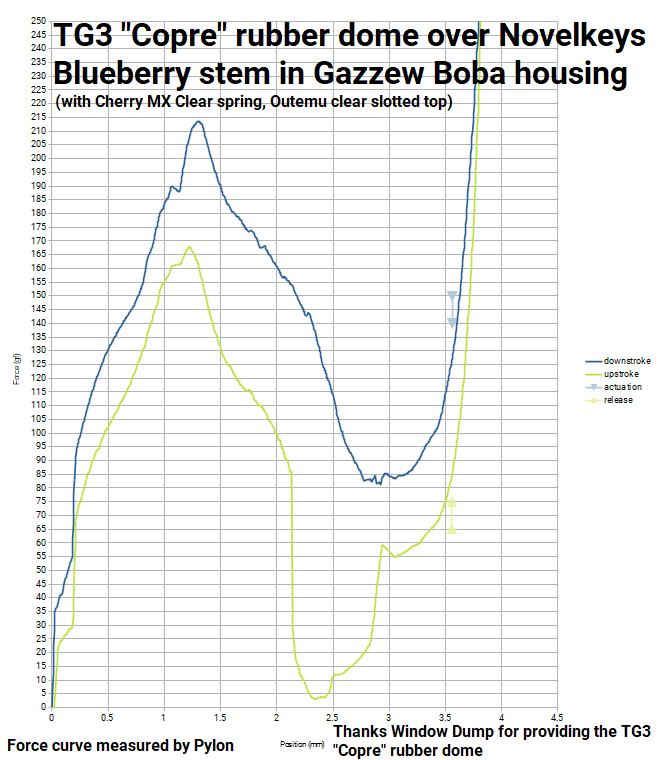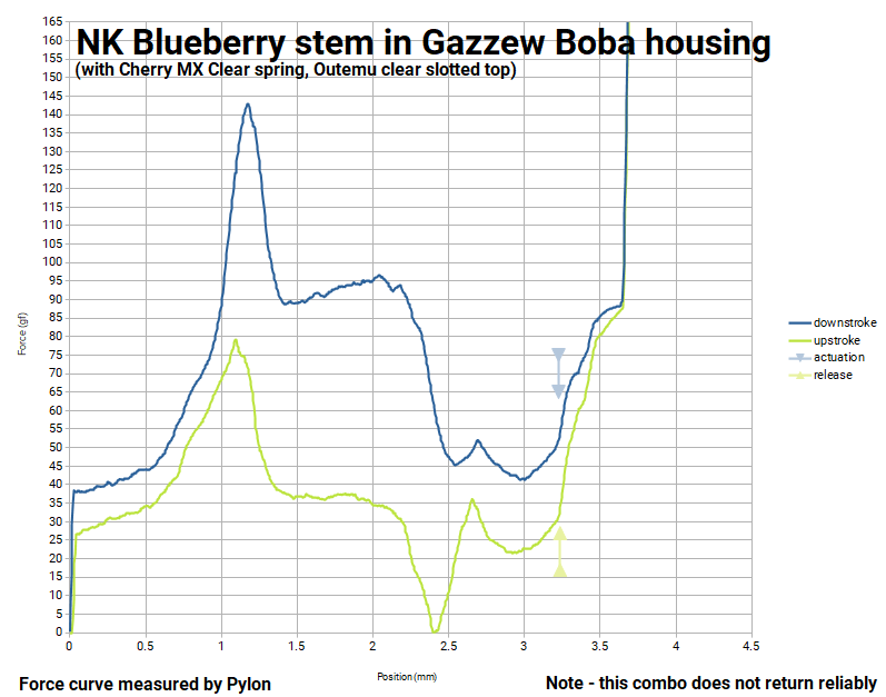 Sample 2 (made with a another Boba bottom, and a 90gf Cherry MX Clear spring - returned originally, but after disassembly and reassembly failed to return. The āCopreā graph below was made with this one)