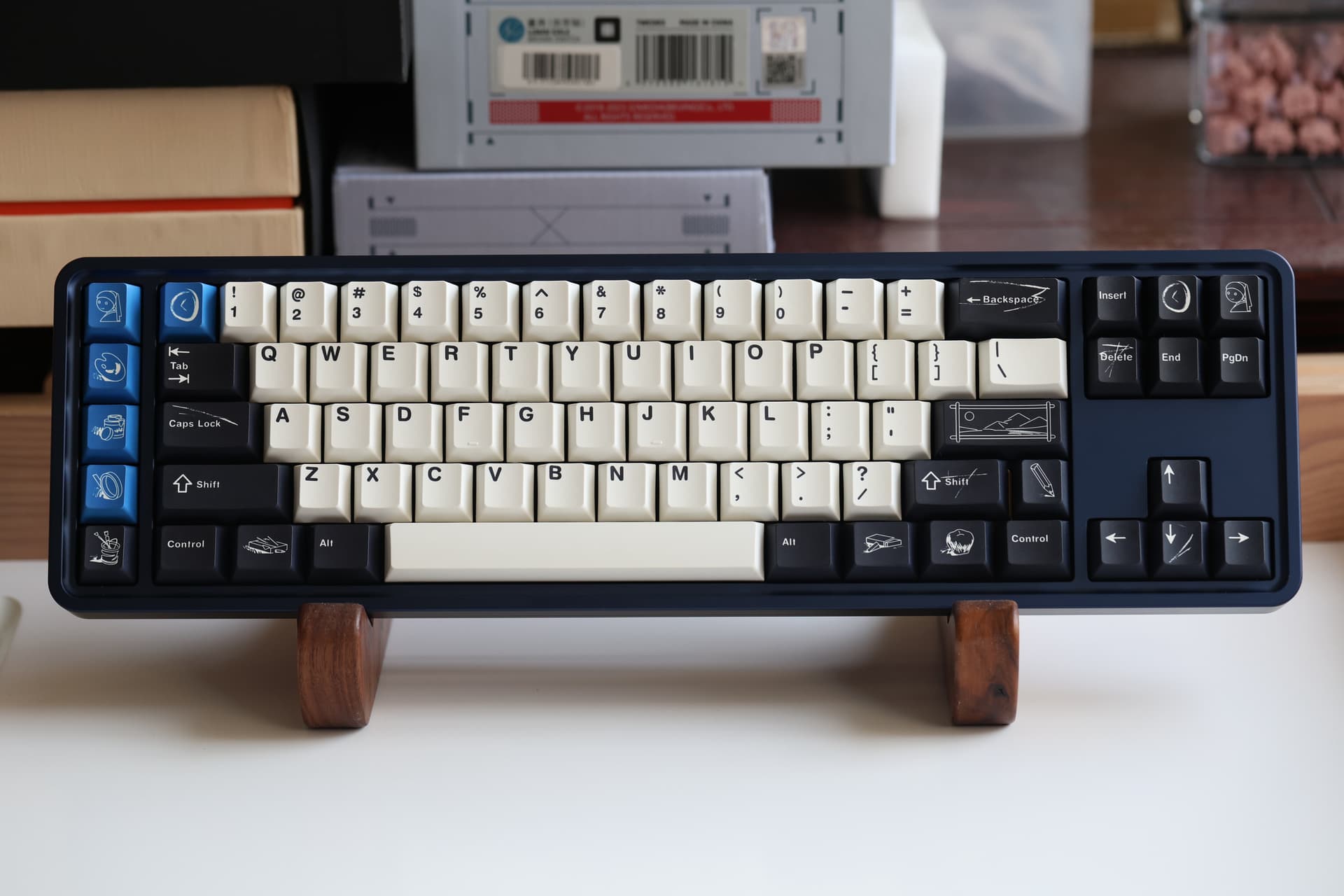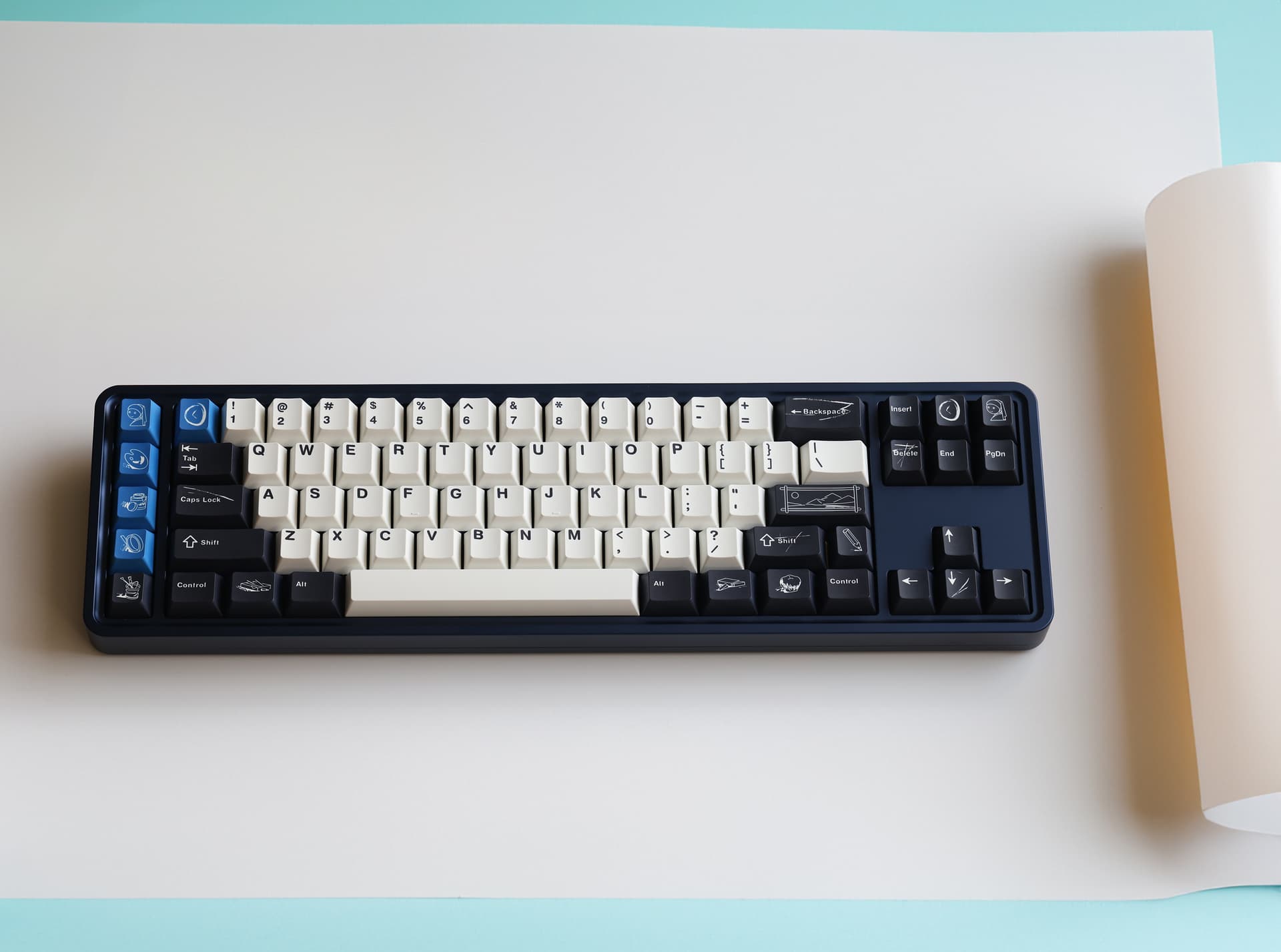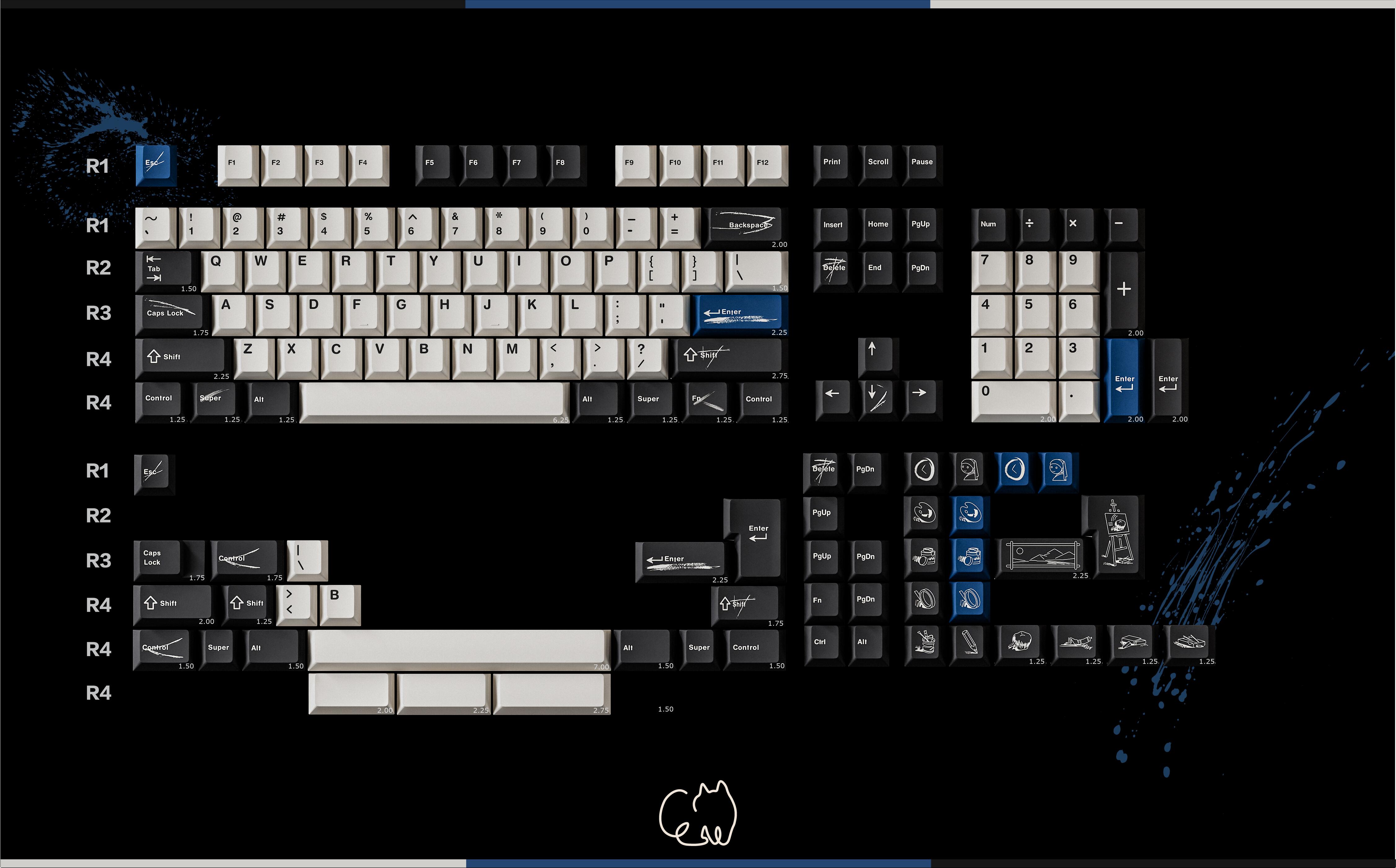 The design of this keycap set is inspired by the brushstrokes and brilliant colors left on canvas by master artists. The charcoal black and warm white keycaps are intertwined, just like the contrast on the canvas, and the ultramarine blue, the oldest color in nature, is dotted in it as if it is the painter’s unique signature! This unique color scheme gives the keyboard a completely new look, as if you are creating a beautiful painting every time you press it.