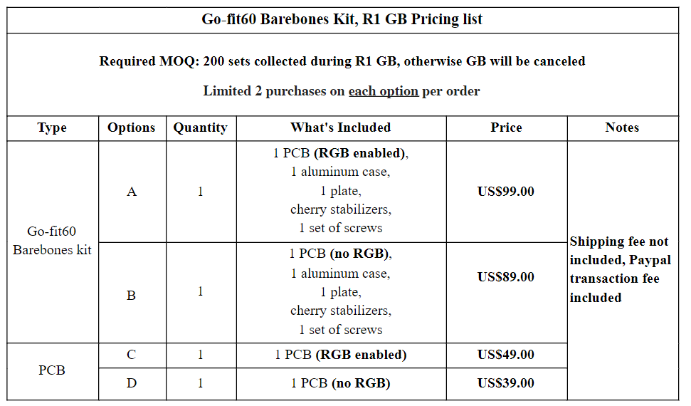 Thanks to all of you who provided feedback and encouragement throughout the Interest Check. For those who have not notified the IC for Go-fit60, it is a 60% barebones kit that has the following features: