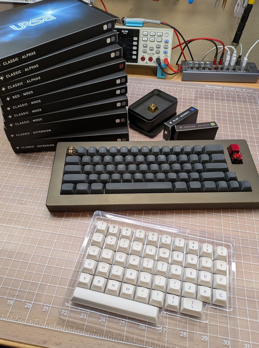 Here we have the Prototype URSA keycaps meeting the production units for the first time (at my house anyway).
