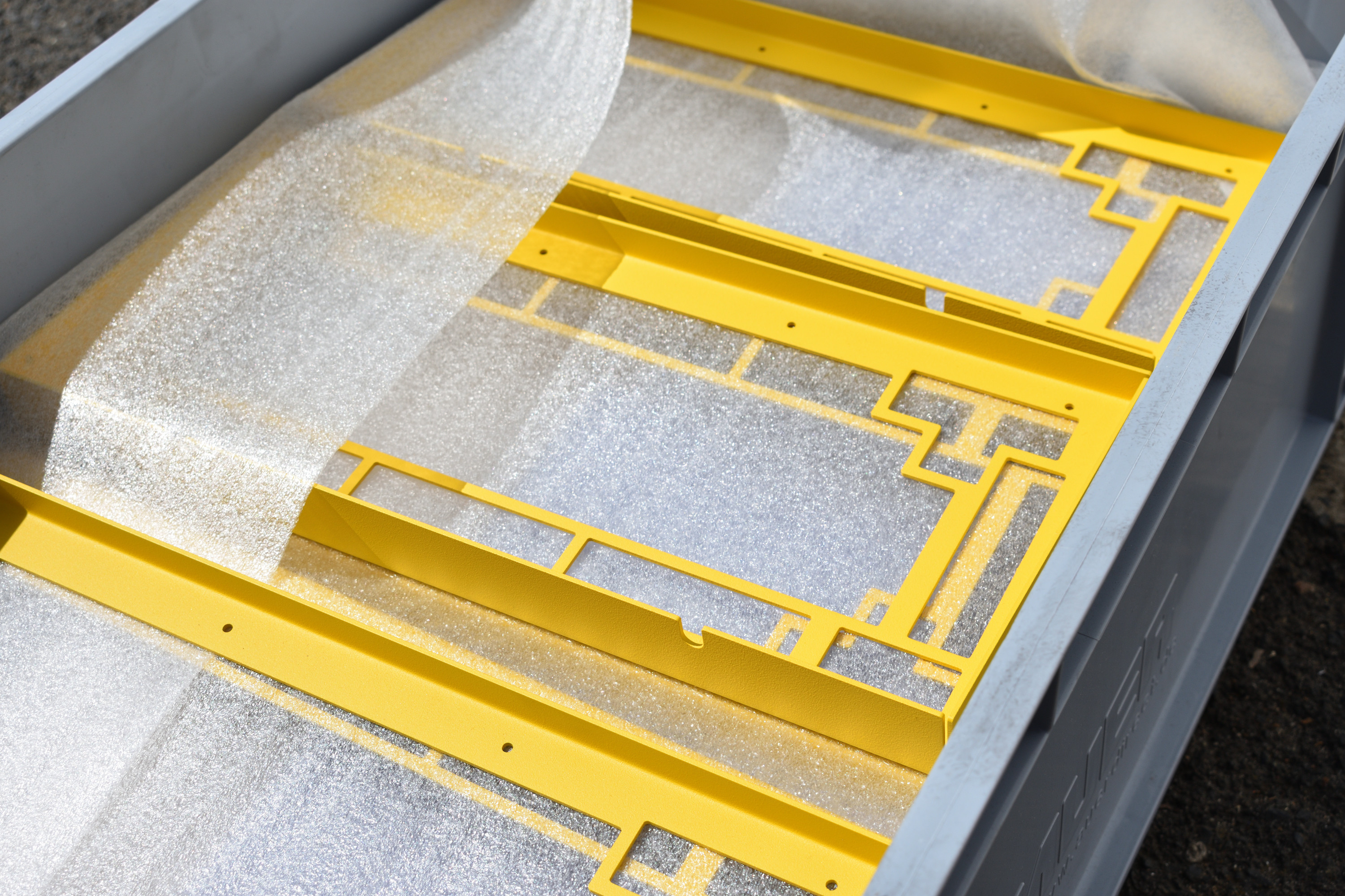 The HMKB GB seems to be progressing well now. All of the powder coated boards are done (see pics below ā the yellow shows off the paint texture well), and the SS cases and brass plates will be bead blasted soon. After that, the plates need galvanized, and then packaging can commence! Iām sure it will at least be a month till they go out, but Plastik has been giving timely updates with pictures which inspires a bit of confidence at least.