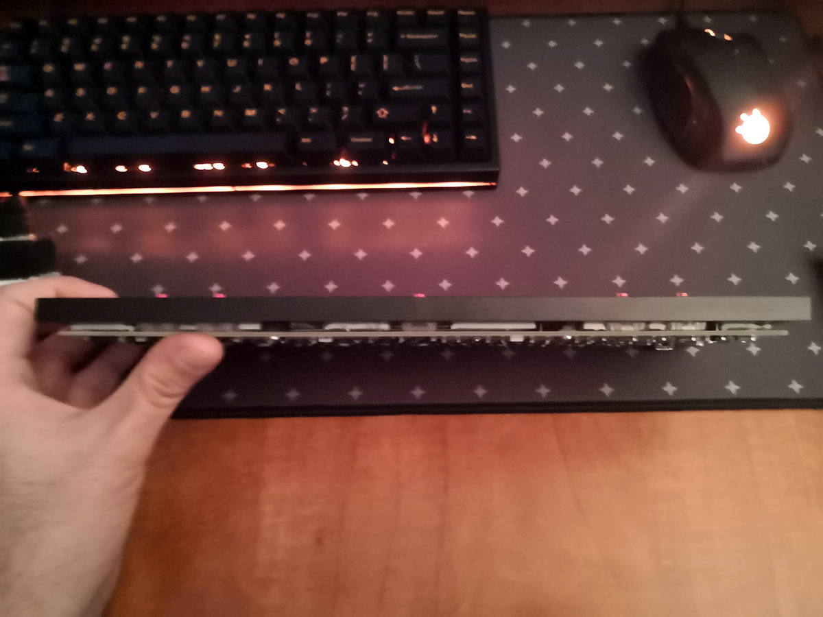 Tire weights… huh. Not exactly my first idea, but that’s certainly an idea… I’ll have to think about it. I want to start getting a board together for portability, so I’m not sure if I want to add weights to the Tofu, but I might end up getting a bona fide HHKB (since my HHKB BT now will unceremoniously not turn on. >:/ )