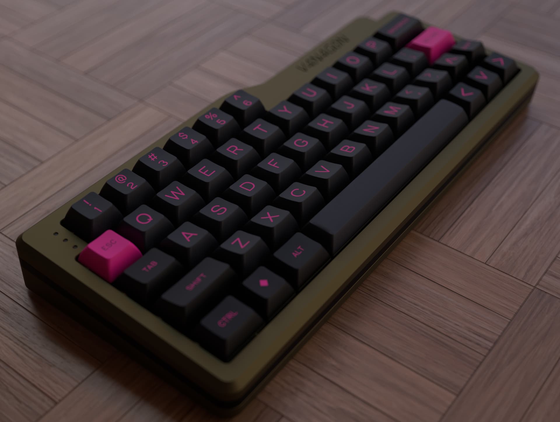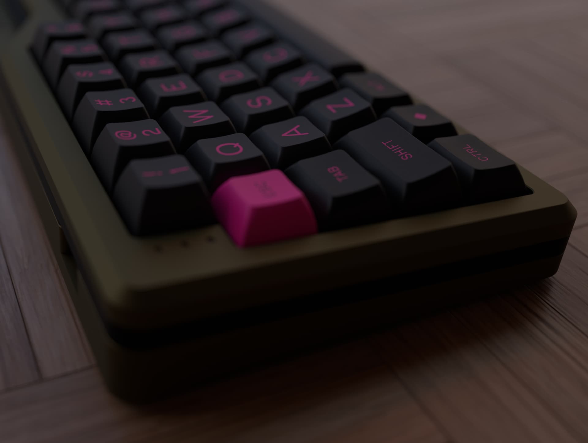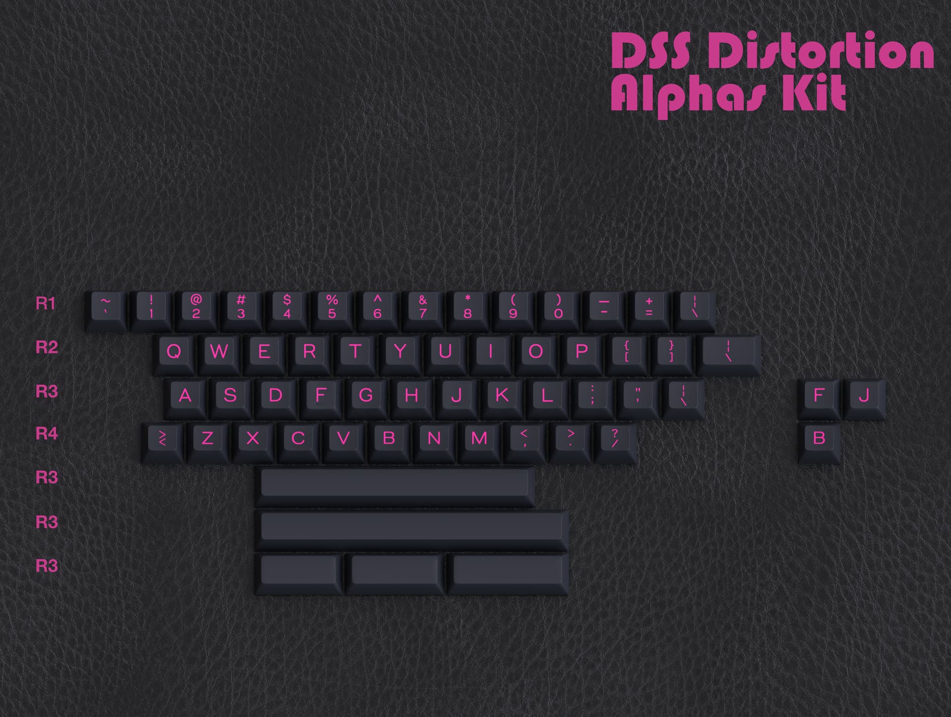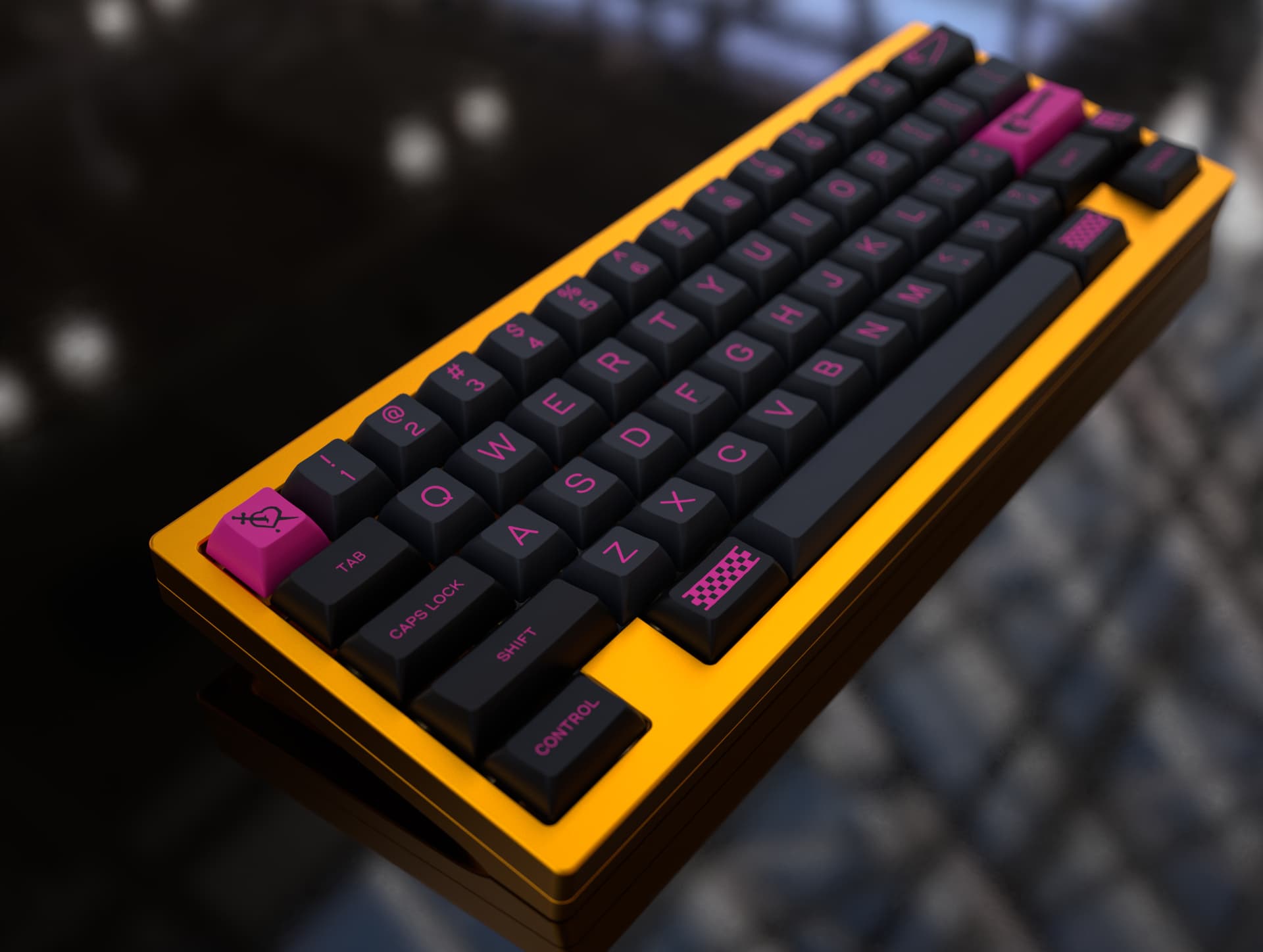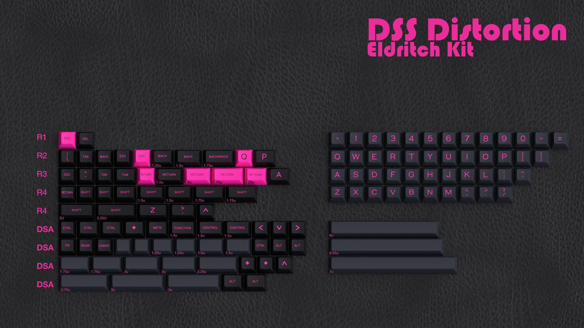 I have always admired the fashion style associated with punk and post-punk. I also think there is space for a set using a very vibrant pink. This set has undergone numerous incarnations, beginning as an SA set and later spending time in the Cherry profile. Recently, I have become interested in designing a DSS set, having tried it on many 40s keyboards at meetups, and find the height and sculpted spherical profile agreeable. So, this became a DSS set, mainly because the SP stock colors really pop, and I am tired of people telling me SA is too tall.