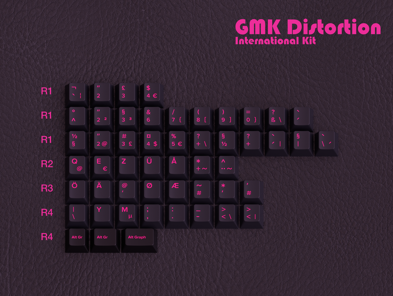I have always admired the fashion style associated with punk and post-punk. I also think there is space for a set using a very vibrant pink. This set has undergone numerous incarnations, beginning as an SA set and later spending time in the Cherry profile. After a period in DSS, the decision was made to redo this in GMK stock colors, which IMO look very good.