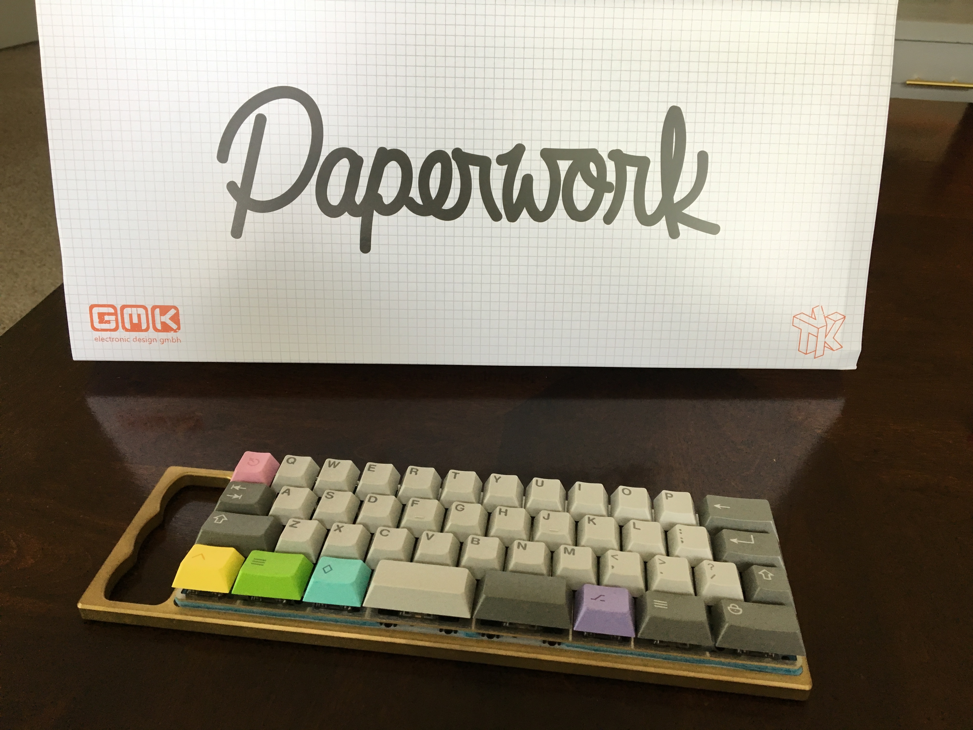 But since GMK Paperwork is the best fitting set for my TVK MiniVan Catalyst (looks great with the Catalyst aluminium case), I recently ordered a second set of GMK Paperwork as I’m currently really digging 40% keyboards.