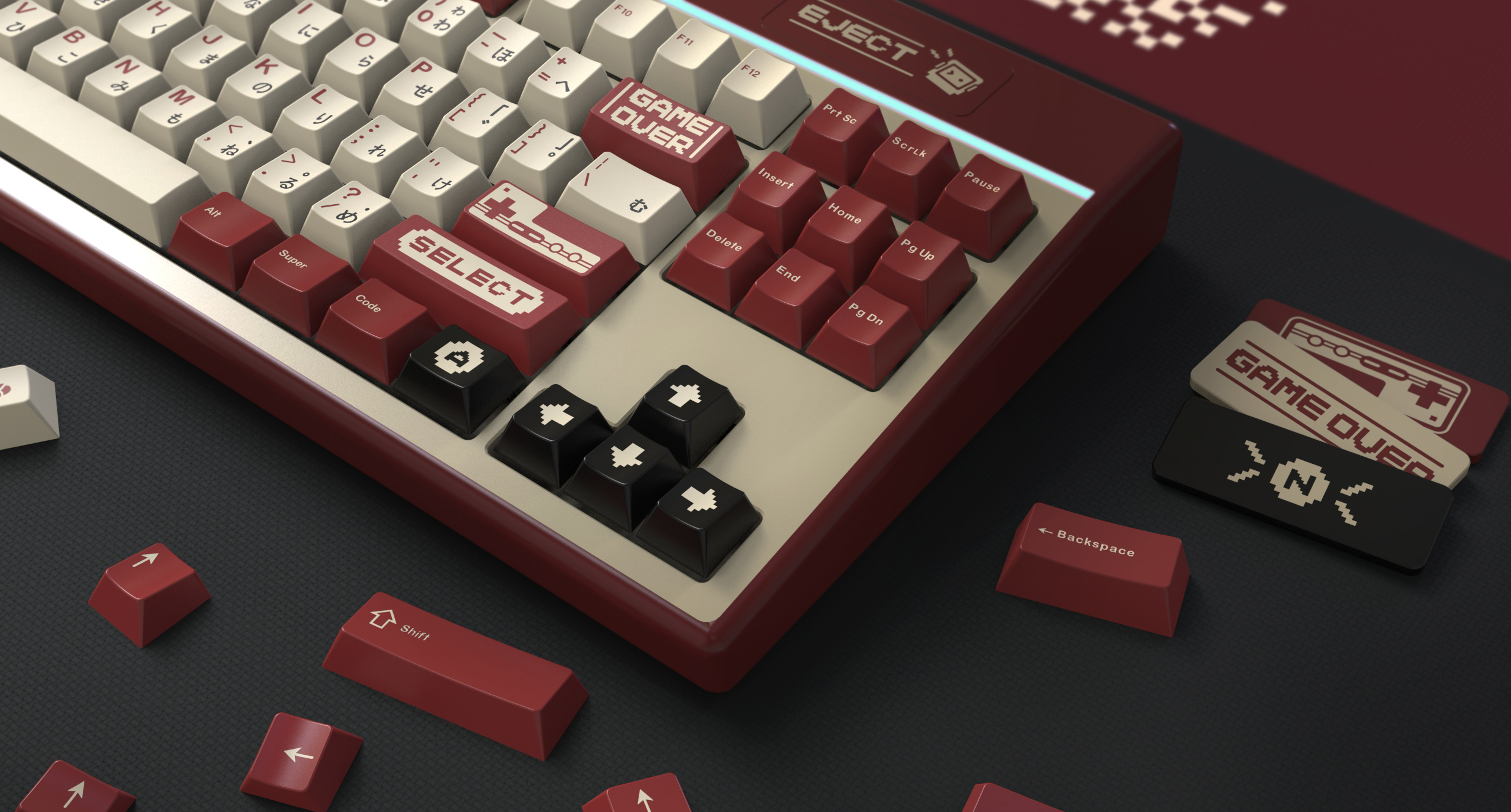 I dig the caps, but I’m wondering if more shape/color usage inspiration could come from the Famicom BASIC keyboard. Maybe not the thing to do right now, but I recall the HB85 doing pretty okay even with its odd vintage layout/shape.