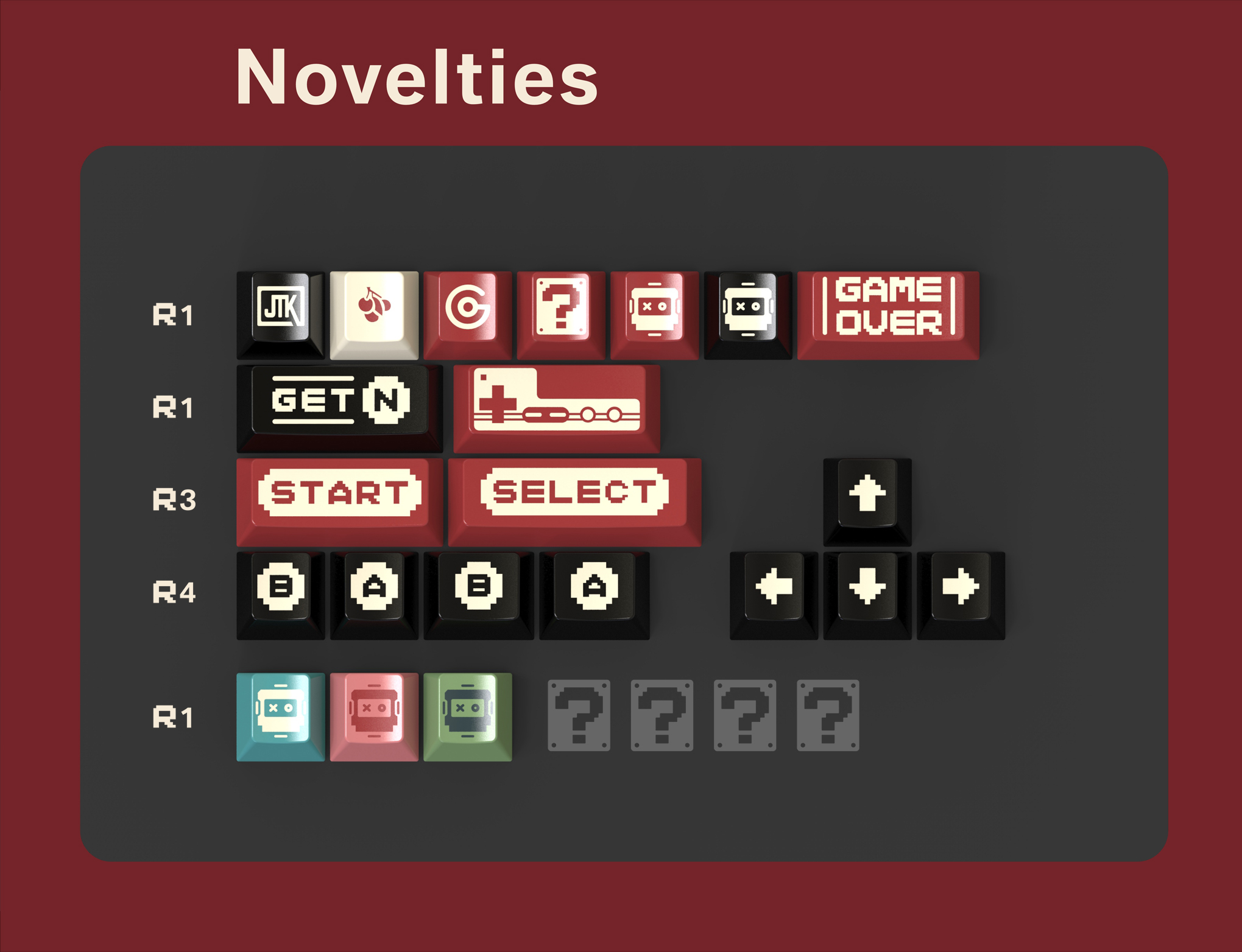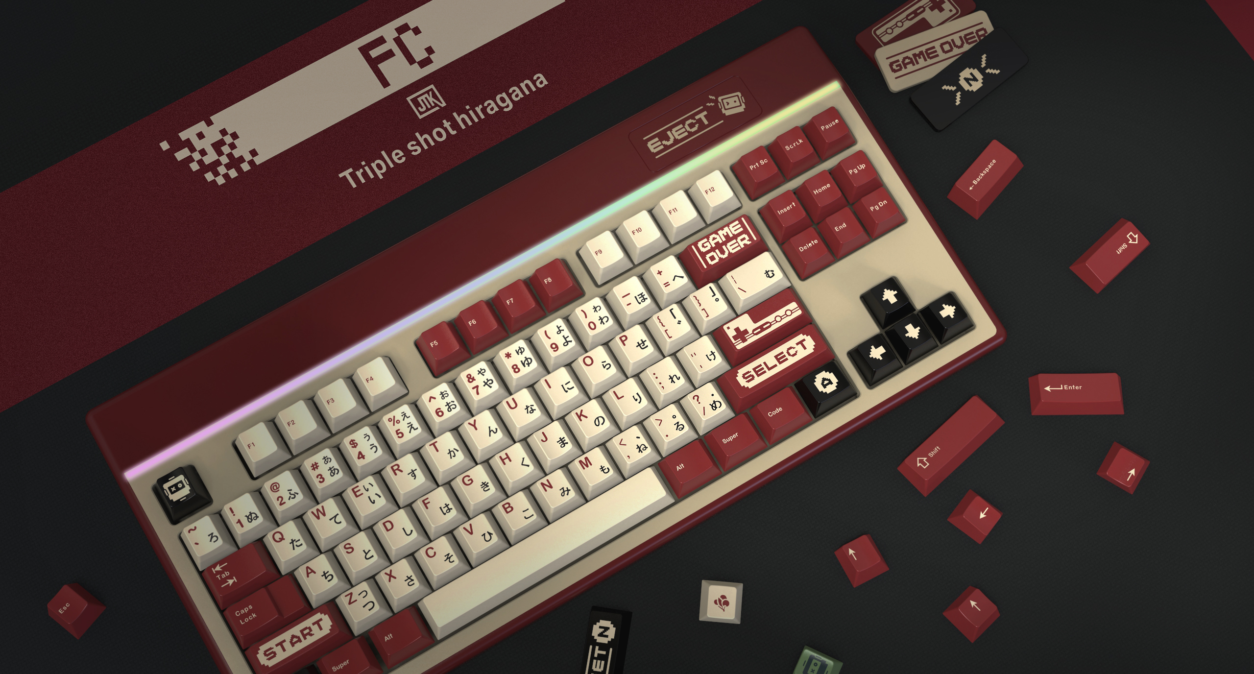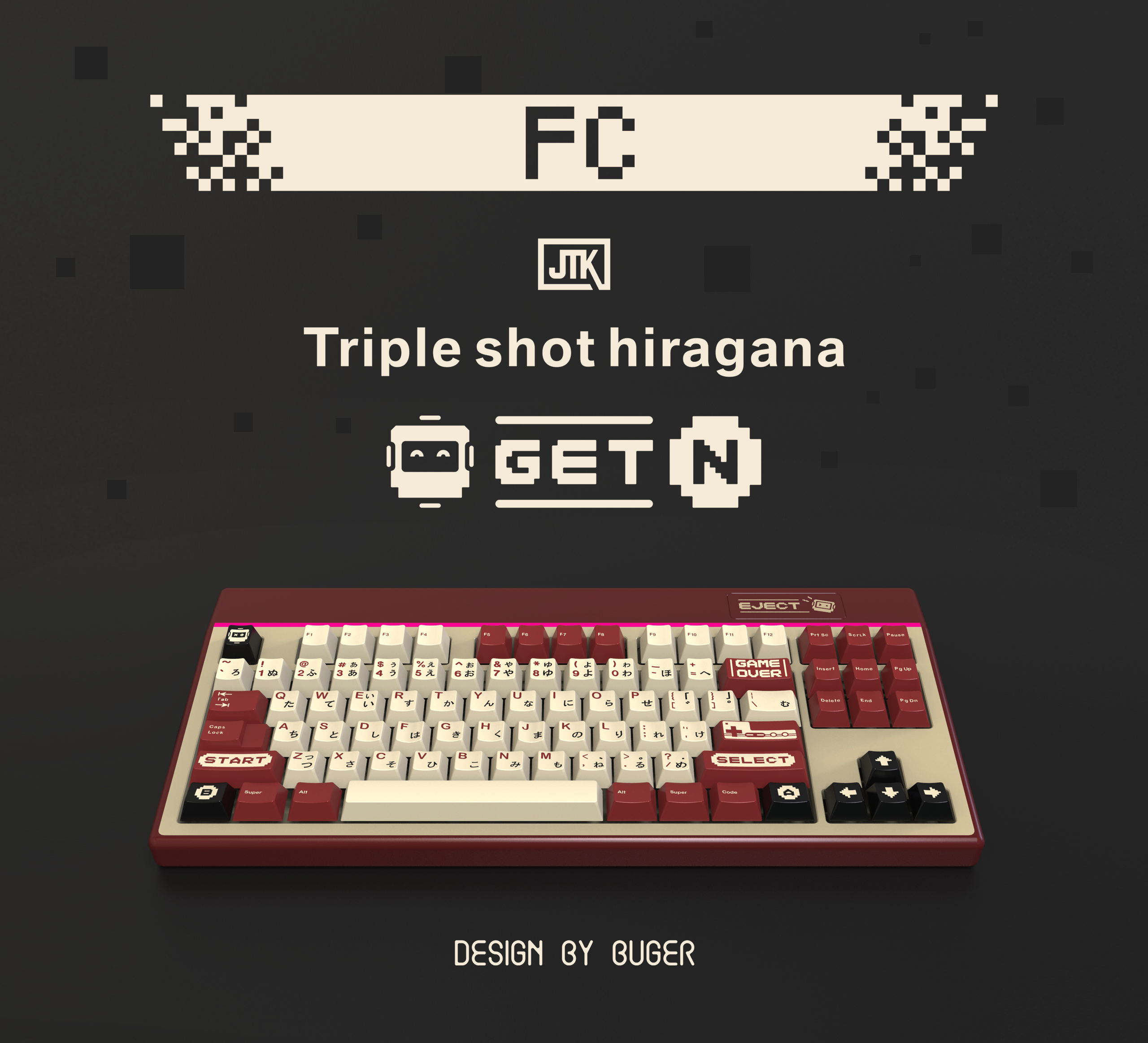 The keyboard from render is the first version JTK keyboard concept. JTK will provide plastic injection keyboard with customized color of JTK keycaps.!