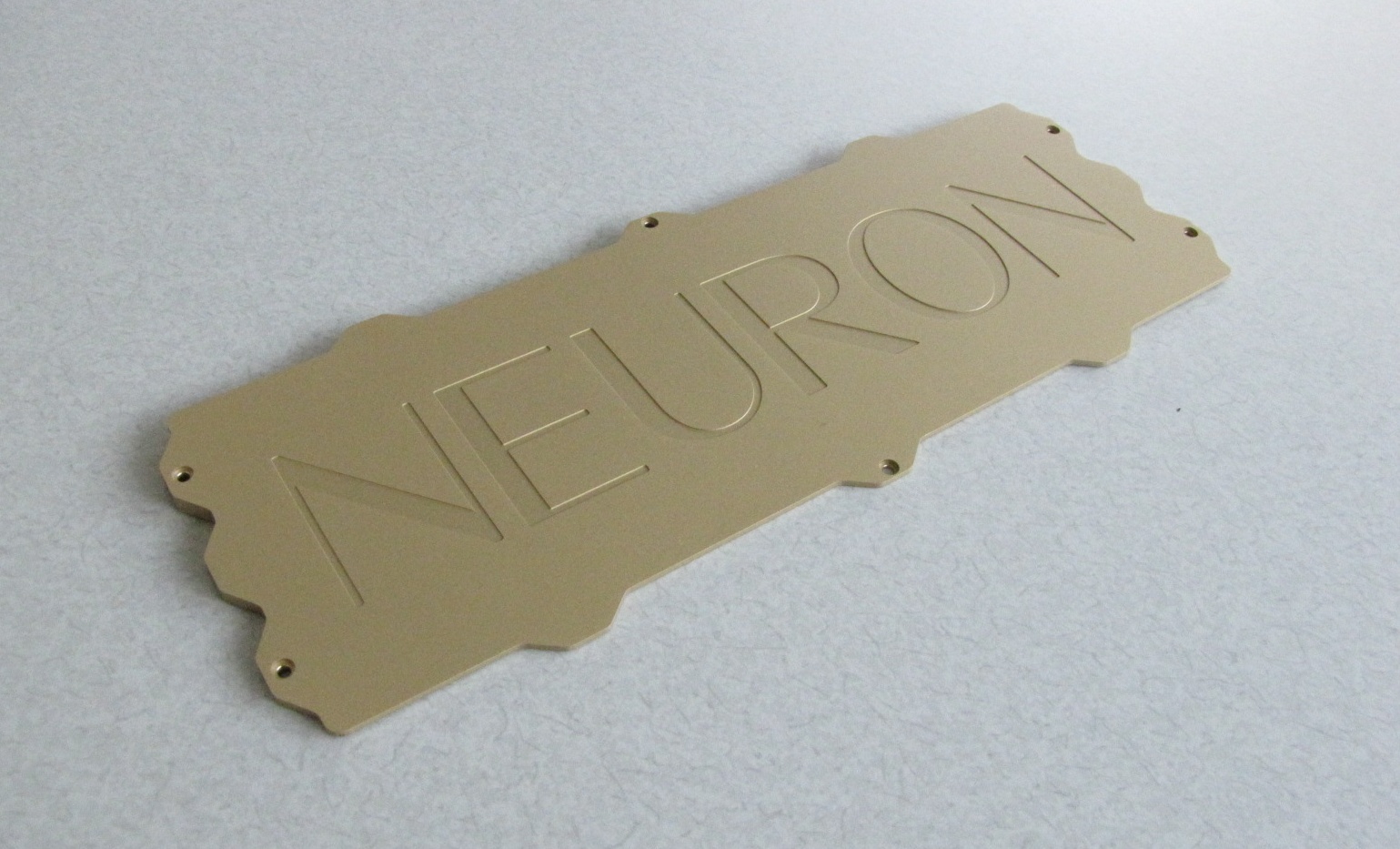 5mm thick brass wedge with NEURON engraving. Aluminum prototype is 2lbs 8oz.