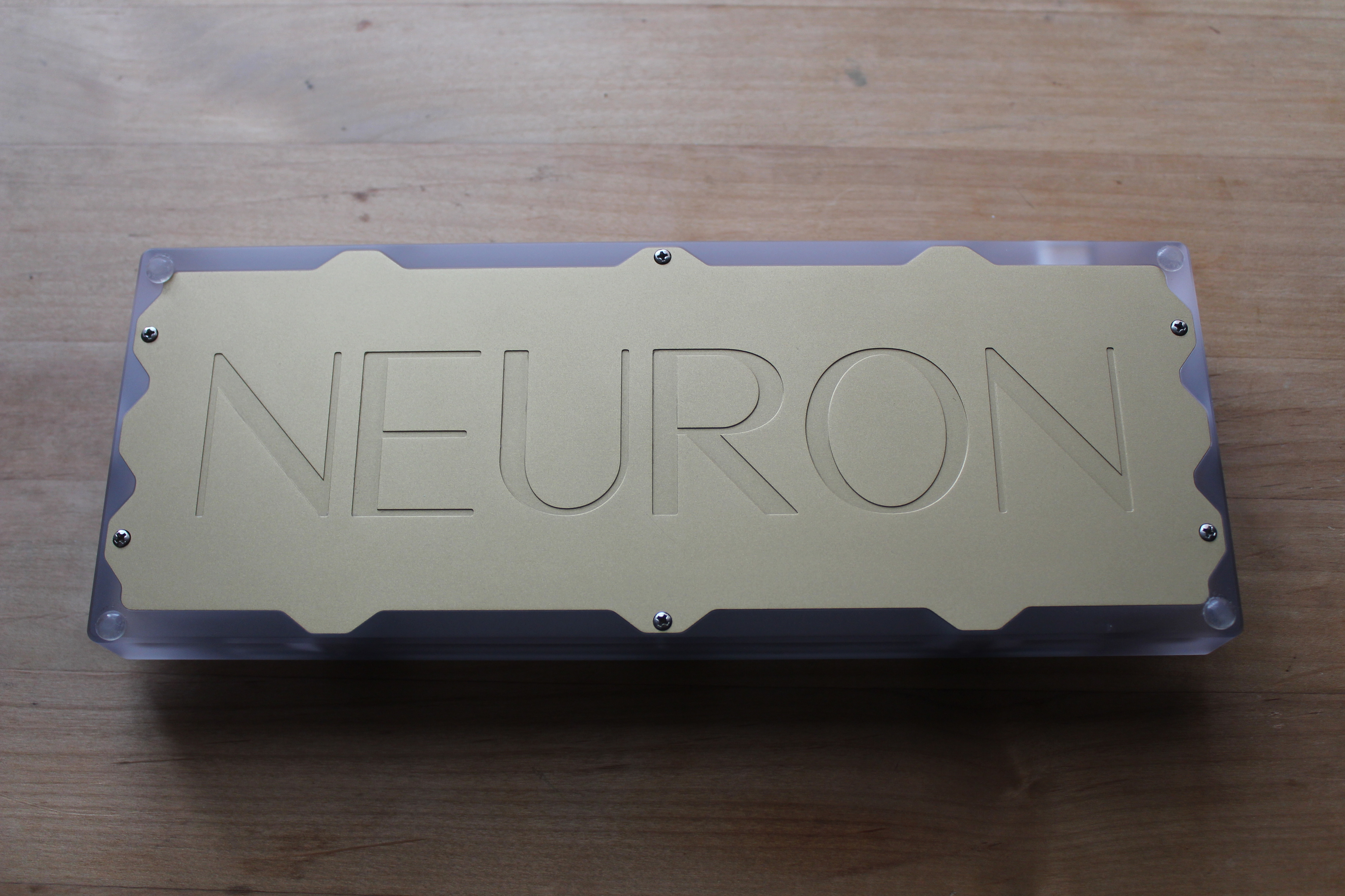 I’ve been working a 40% keyboard this summer, and I’m proud to announce the Neuron: a HHKB-blockered 40% keyboard with a top-mount plate and a big-ass brass weight in the bottom. The Neuron is a combination of all the features I love in other 40%s but haven’t been brought together in the same board yet. I hope you like it!