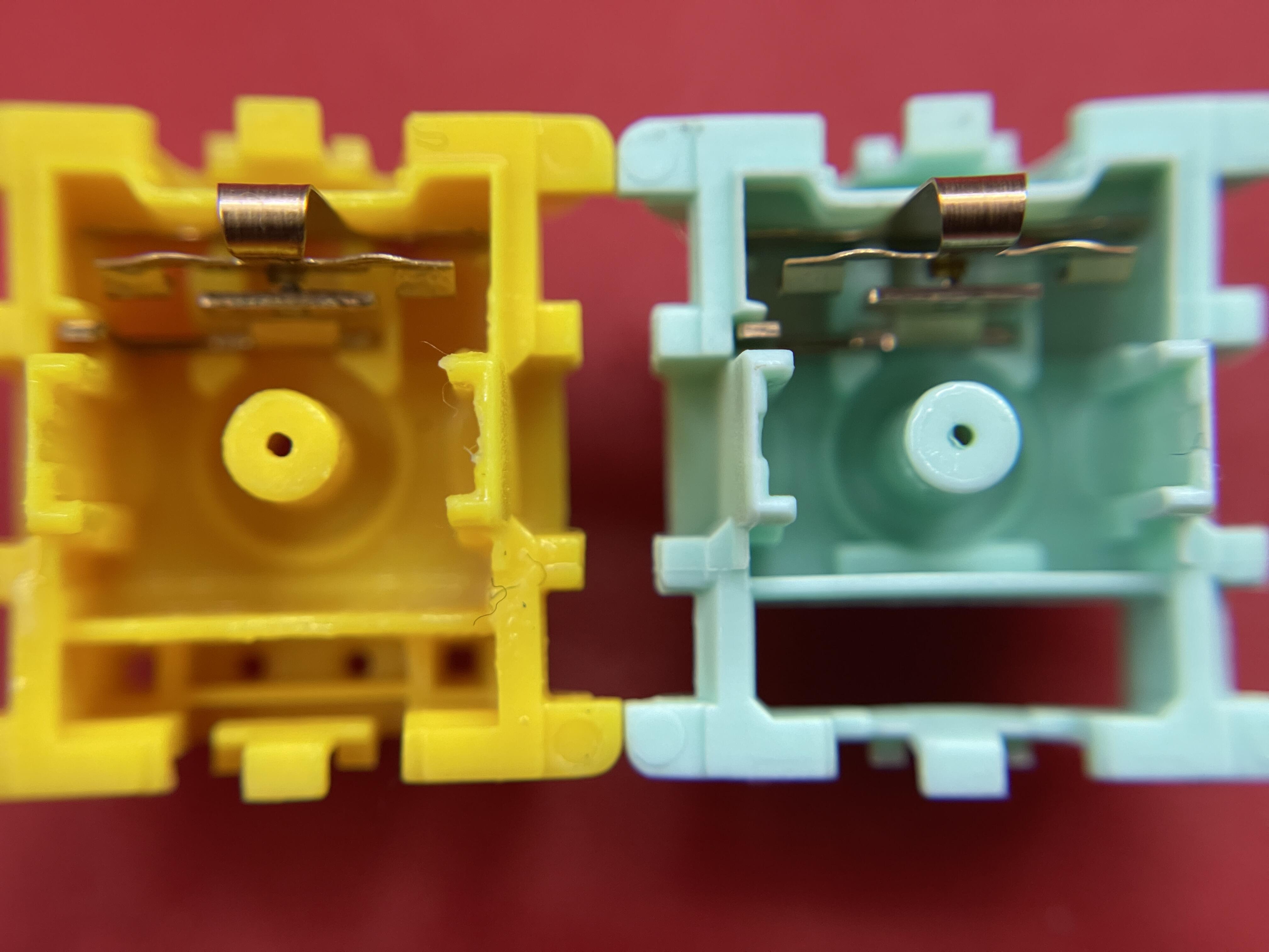 The housing is different than that of the Cap Golden Yellows as the LED diffuser slot for the top housing looks to be about 25% deeper into the internal housing switch box, possibly changing the acoustics of the switch entirely.