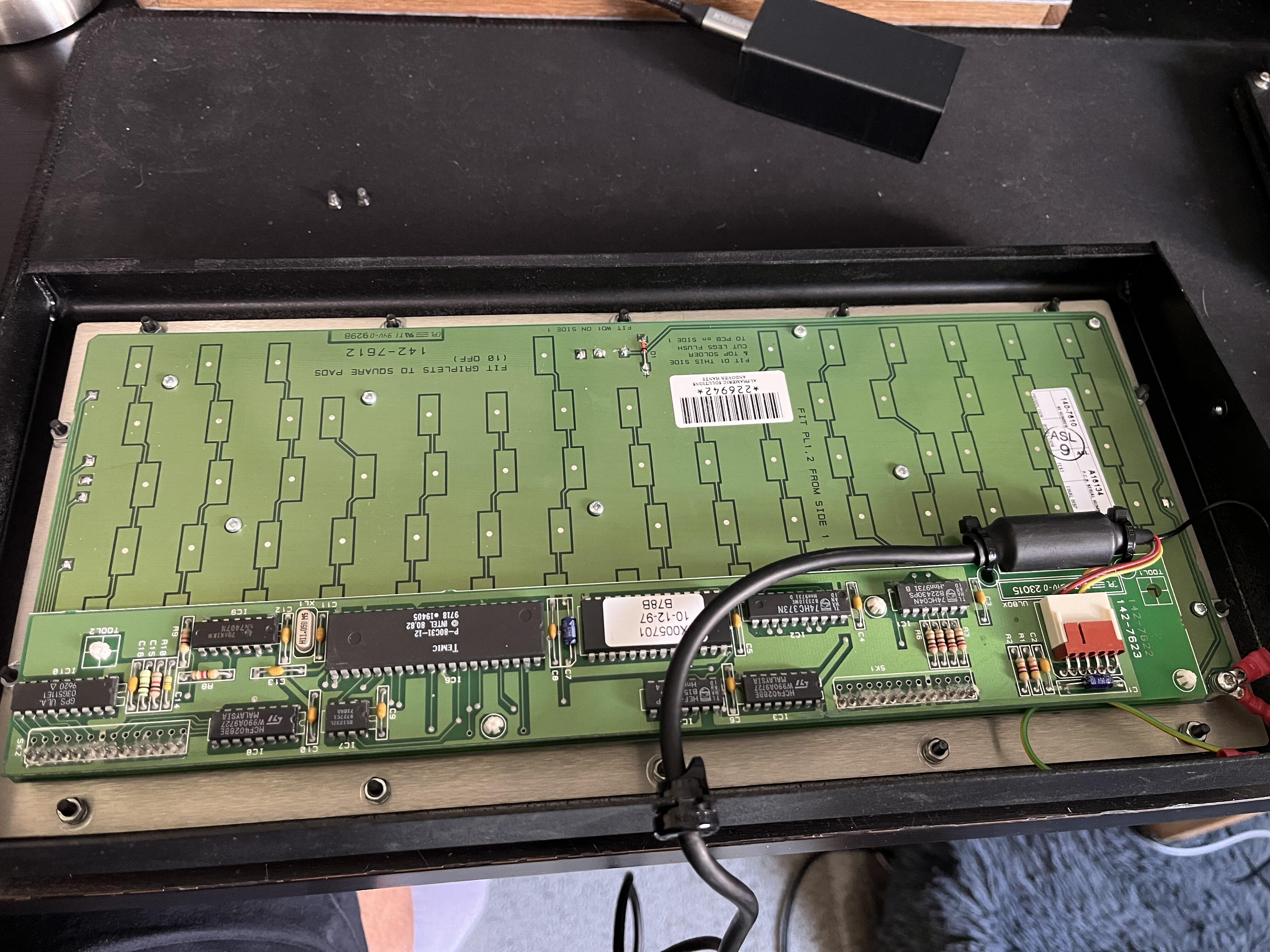 Found this odd little 75% on eBay and just picked it up. If I’ve done my research right, inside the steel case should be an Alphameric resistive switch keyboard unit. It seems to be some sort of ruggedized hybrid of membrane and Topre-style capacitive. Looks to be PS/2, but if nothing else, I think I could top-mount a 75% PCB or handwire inside the sheet metal case. I’m guessing the keycaps are dye-sub PBT in what looks a lot like Cherry profile.
