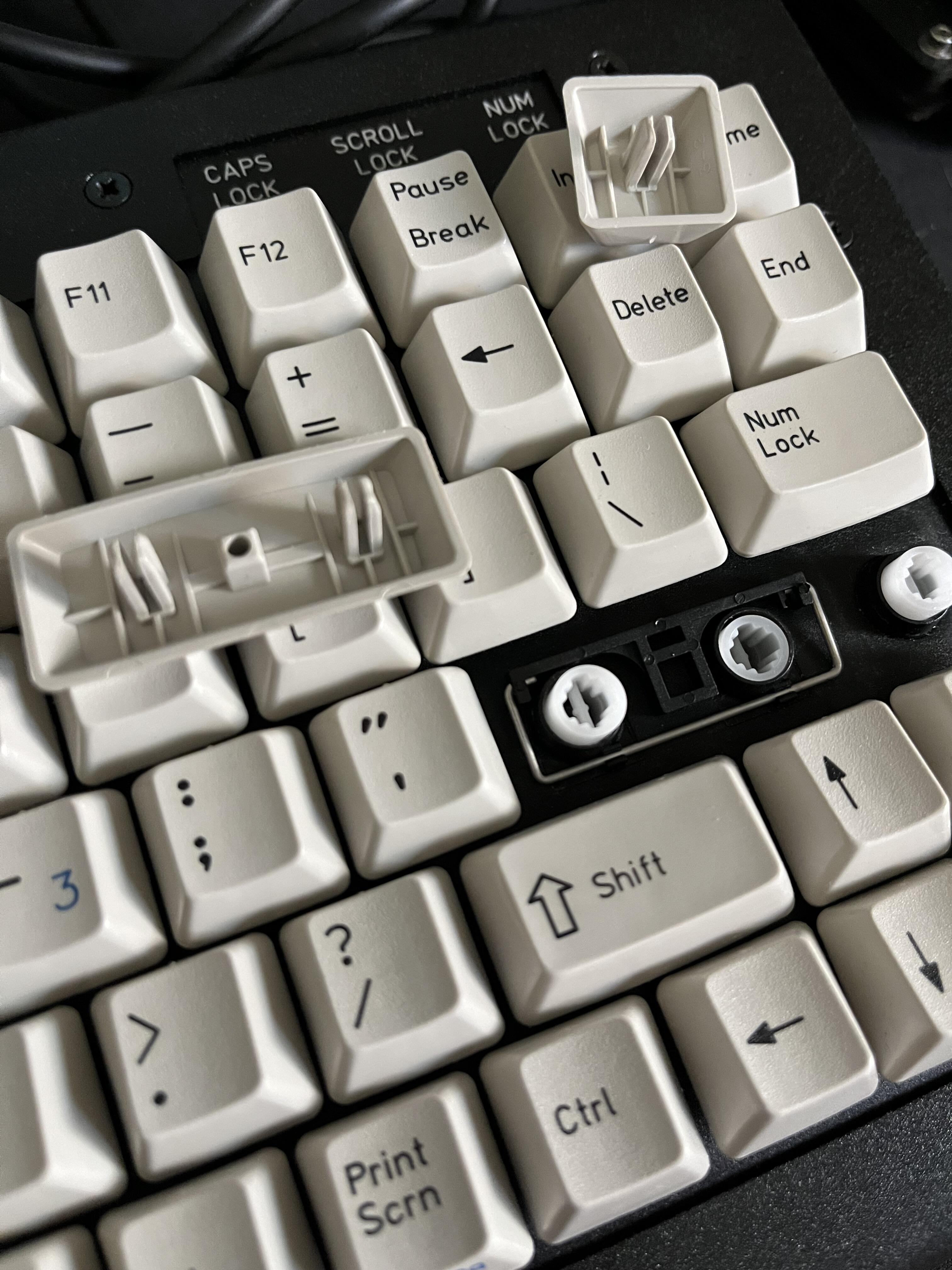 Typing experience is… odd. Bottom out is really mushy, and travel is just a touch less than I’m used to from Cherry and Buckling Spring, but it’s much firmer than your average rubber dome, and key weight is also heavier in a way that feels like a good thing. I think someone who didn’t bang on keys quite so heavily as me might like it. I’ll need to track down a Topre to compare, but I’m sus that many would find the Alphameric to be “better”.