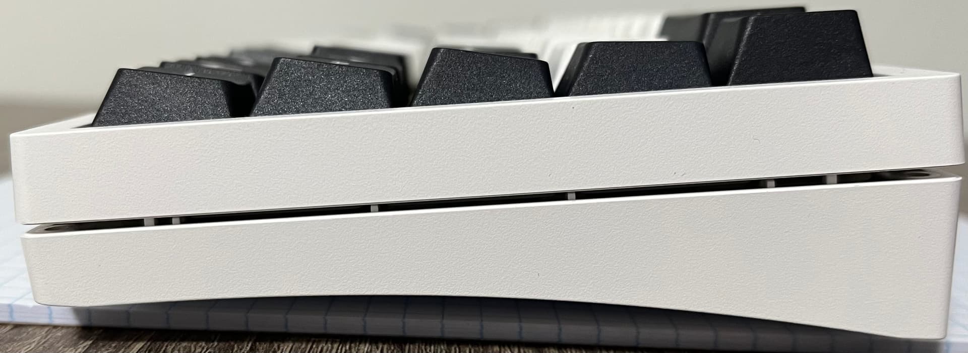 Due to the silicone, case separates a bit compared to without, it needs to be pressed to eachother a bit to be closed properly, not a high amount of force but it’s still needed, also I can see faint hotswap socket “prints” on the silicone.