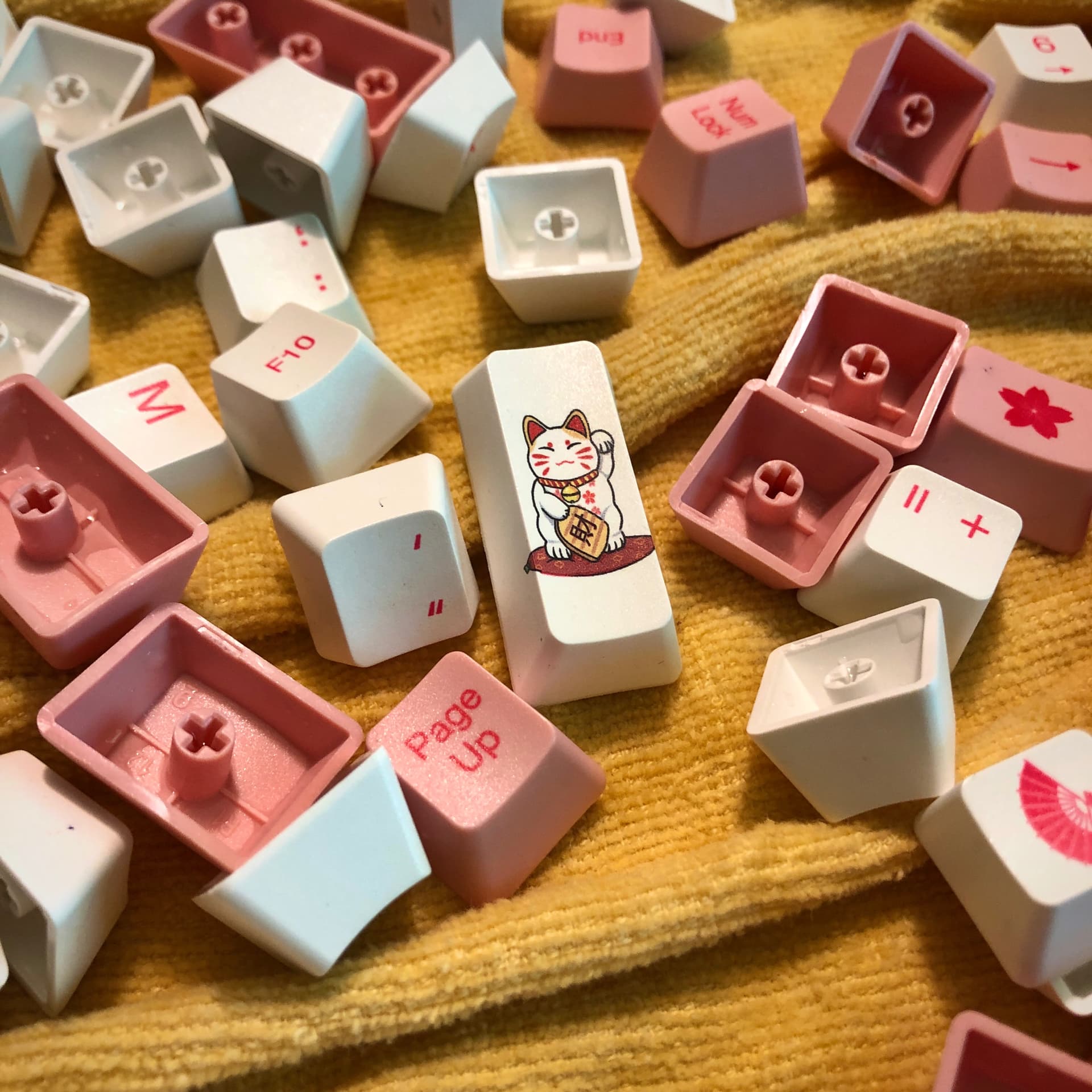 I also swapped the black-bottom Box Browns for white-bottom ones to better match the wrap. I modified the FFX art of Yuna to fit the plate, and he picked the keys including the Chocobo in the corner.