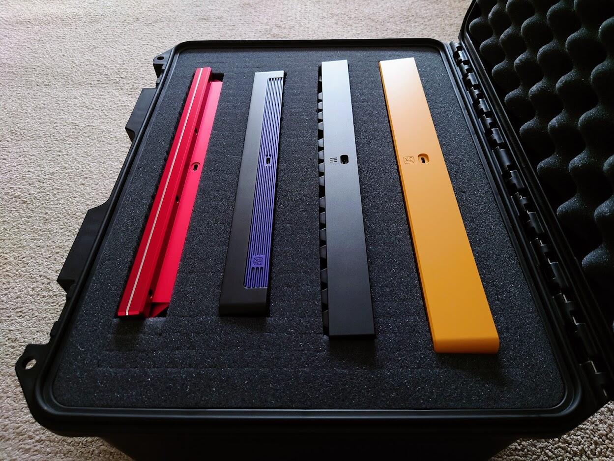 Just finished cutting the foam for my Pelican case. I have 7 boards, 3 of which have their own case so this size pelican case is perfect for storing the other 4. The weight on this thing filled up is about ~25 lbs.