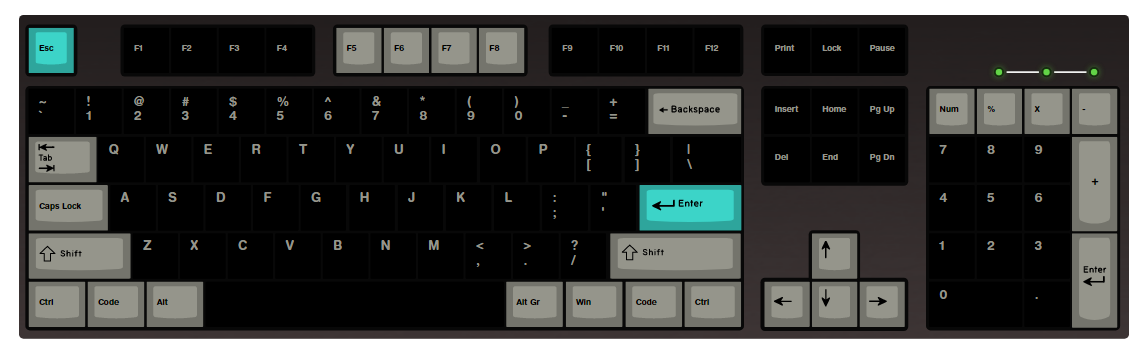 Mod keys; alpha and arrow legends: Dark grey GG 123, 120, 115 #7b7873