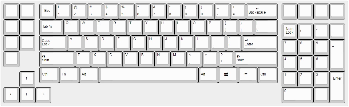 I definitely see what you’re saying regarding the numrow. Me, personally, I have small hands and don’t like to leave the home row to hit numbers. I end up using mods galore to bind keys. To face the truth, you’re absolutely right. I think most gamers utilize the numrow. @Rob27shred I like the balance a shifted numpad has and to keep the balance I thought maybe I could just add an extra row of macros/navigation buttons above it. I don’t know if I should add buttons or a trackpad below the space bar. I feel like anything in that location would be inadvertently pressed. Maybe it’s not ideal to even have that space? This board only really shortens the entire length by one column, but it should give the mouse 3 columns of space because of the rearranged nav. Maybe it would be simpler to just throw the nav cluster on the left. Thank you for the input! Here’s what I came up with considering your suggestions: