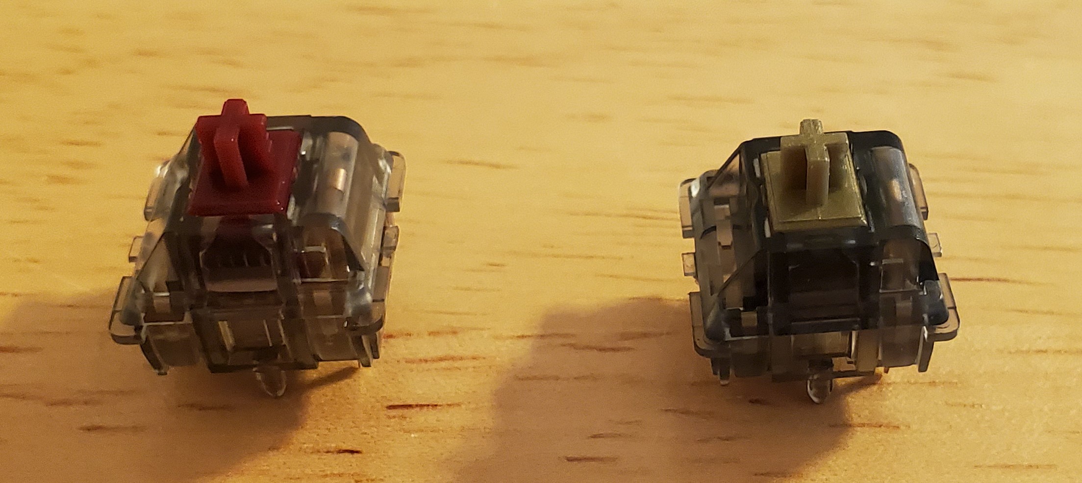 The only major complaint I have about both of these switches is that Durock/JWK went way heavy on the factory oil application on both. So they do need to be cleaned out before proper lubing. Whether that is a full ultrasonic clean or just wiping the parts off with dry lube applicators & tissues, it makes a big difference. While whatever oil they use at the factory mixes well with Krytox & Tribosys, there is so much on these switches it will significantly thin out whatever your lube of choice is. Anyways just wanted to post this for you guys interested if there is any differences between these two switches.