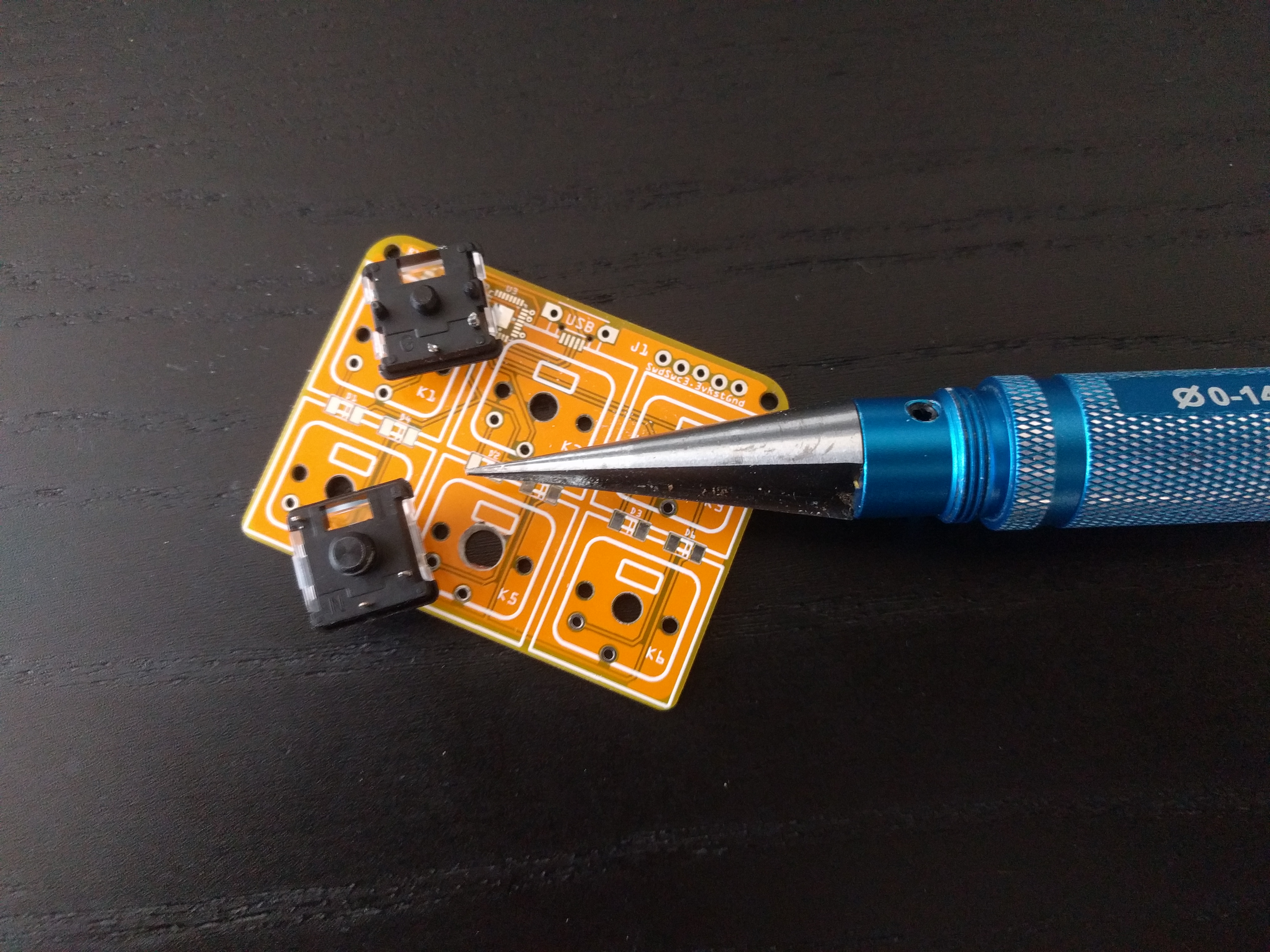 Next, let’s talk about compatibility with the old choc switches. While the pins are in the same places, there are no stabilizing numbs, and the center nub is much bigger. So I had to do a small “modification” with my reaming tool: