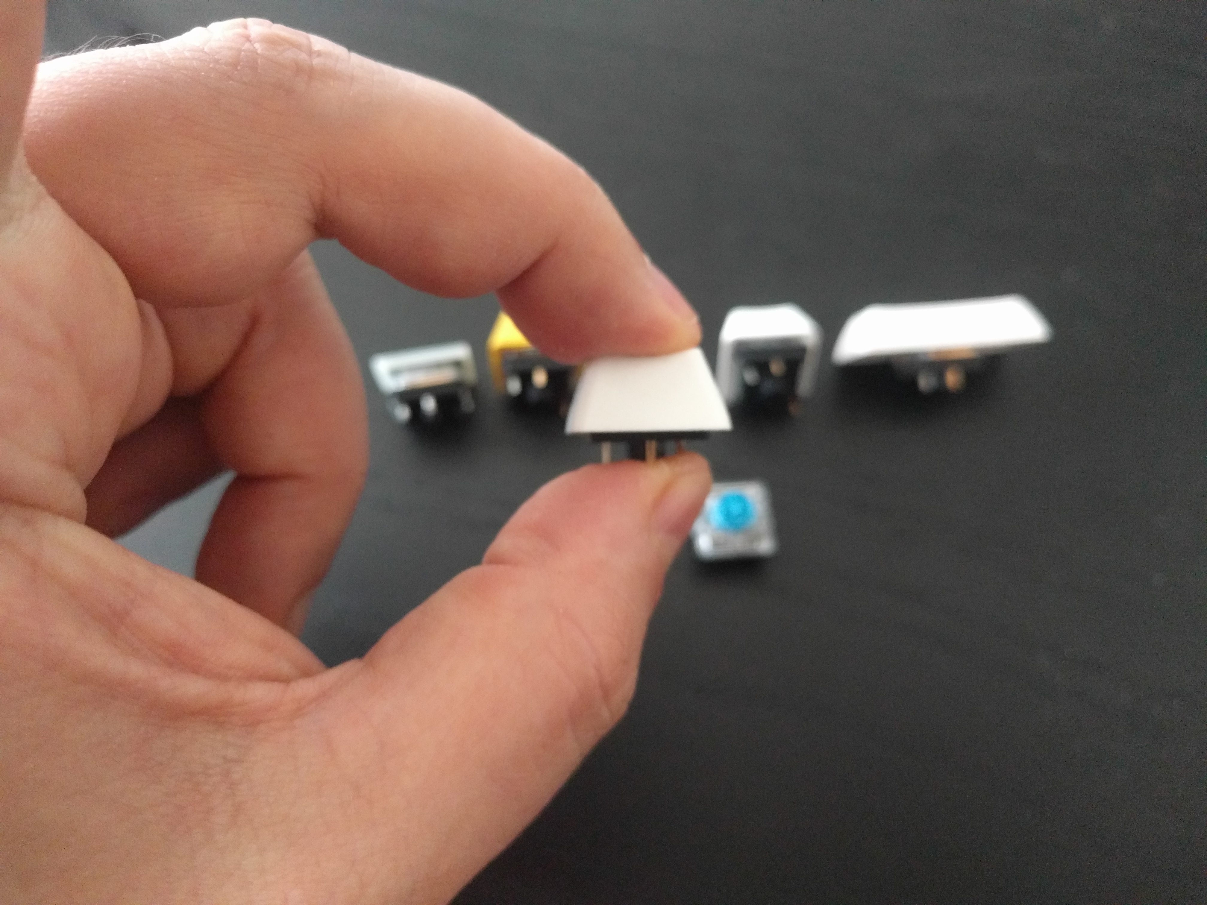 As you can see, they are no longer as “low profile” as the old ones — they key cap is simply too high, even if it’s a DSA profile. But more importantly, if your key cap has any kind of enforcing structures inside it, the switch will no longer fit inside the kecap.