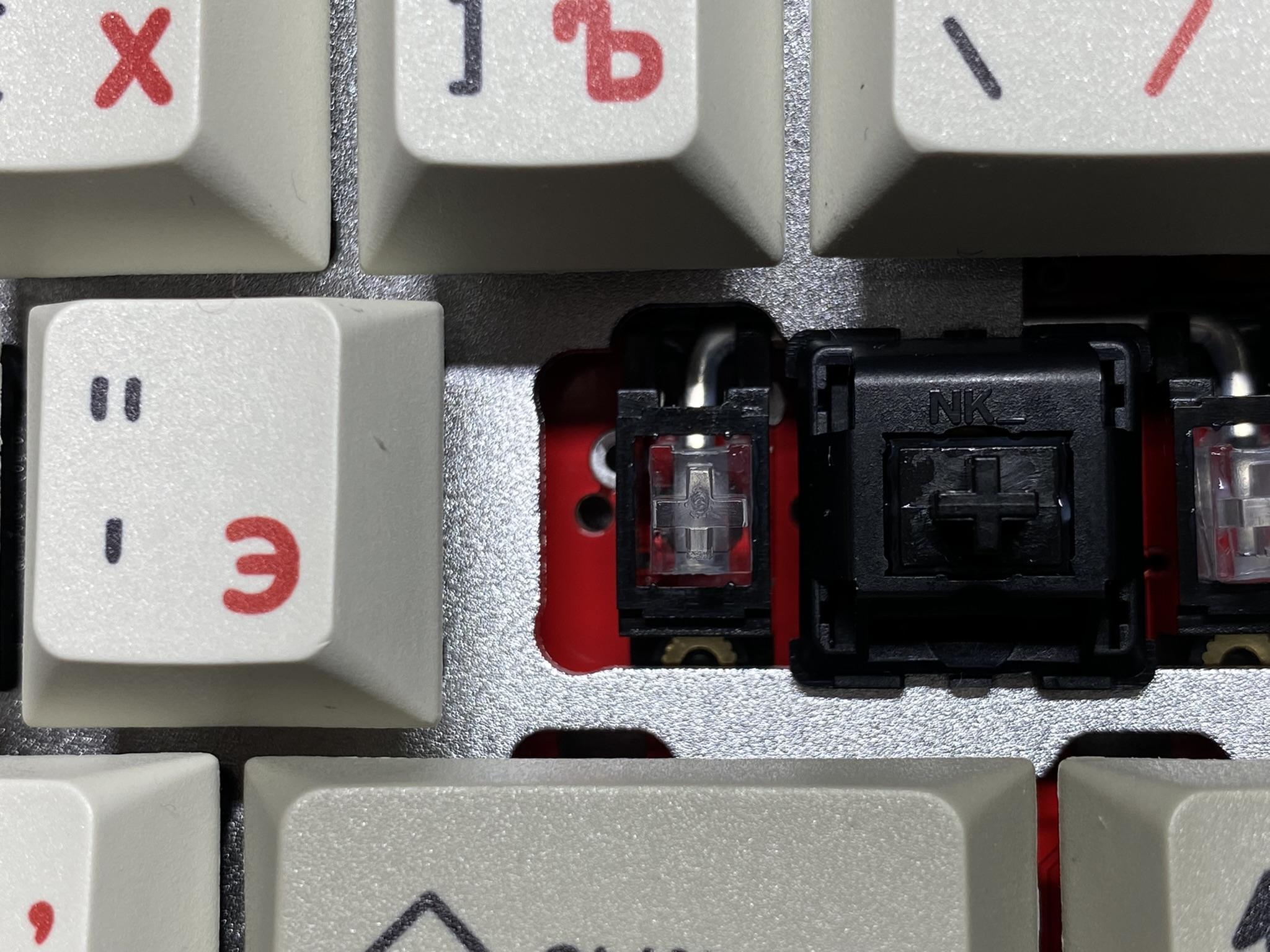 Today I was dealing with these suckers. I don’t know if I want to even try to bother fixing the NK_ label. The secondary issue I’m having is that, for some reason, these stabilizers seem so finicky when using dielectric grease. Even the smallest amount in the wire hole will find a way of working out on under the stem. Luckily it was a hotswap board, so not that big of an issue, but I had to completely remove the stabilizers and clean them off with isopropyl. They were sticking to the PCB from the leaked grease. I’ve lubed several dozen stabilizers this way and I’ve never had a problem like this. Might just trash them. I’m currently using them lube free, just rattling like crappy cheap stabilizers.