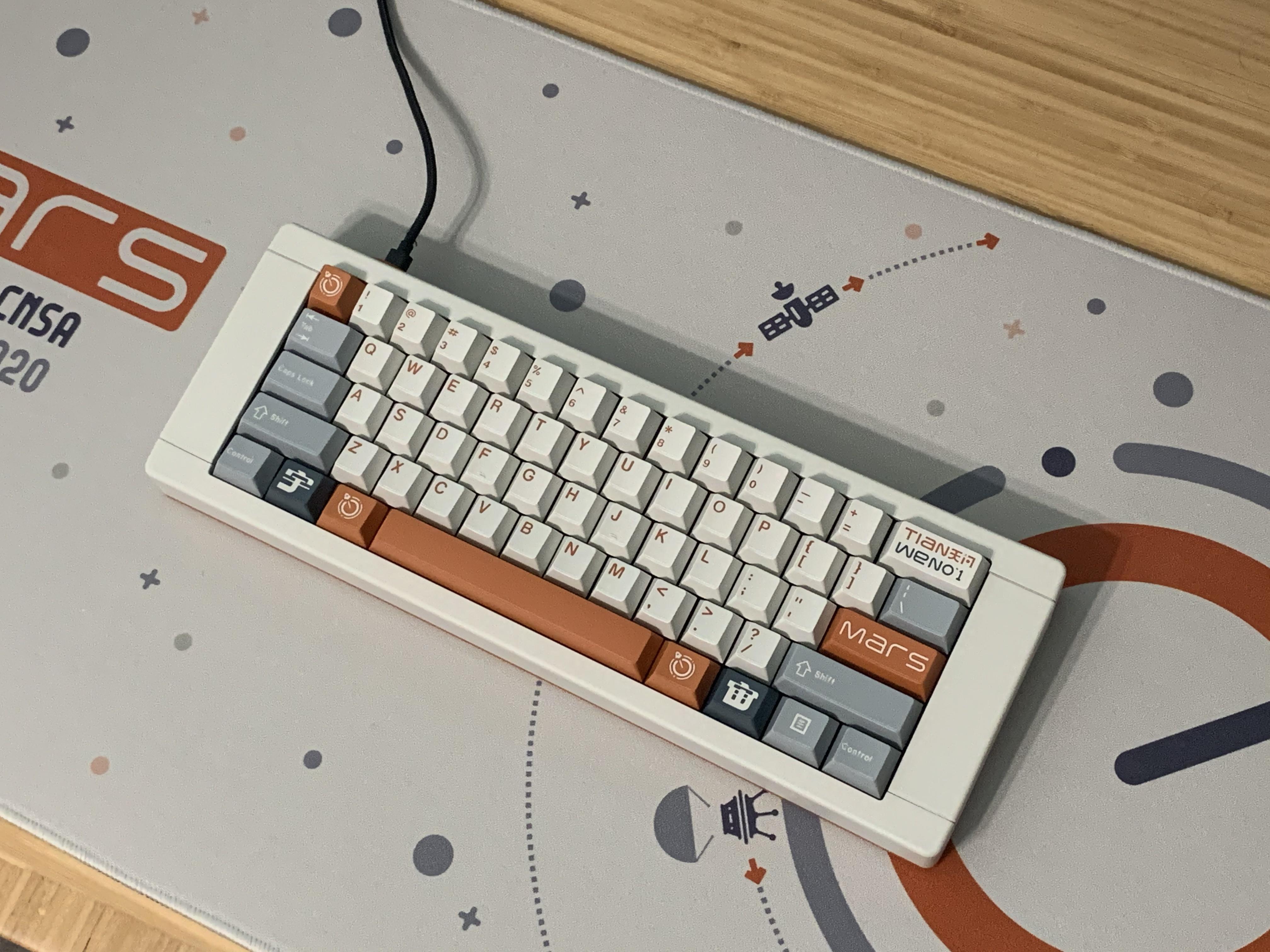 That said, I am fairly happy with this orange PBT set I’ve cobbled together but the CDO in me (it’s like OCD but the letters are in the proper order as they should be) keeps reminding me I have a few squared-corner keycaps vs. rounded on others.