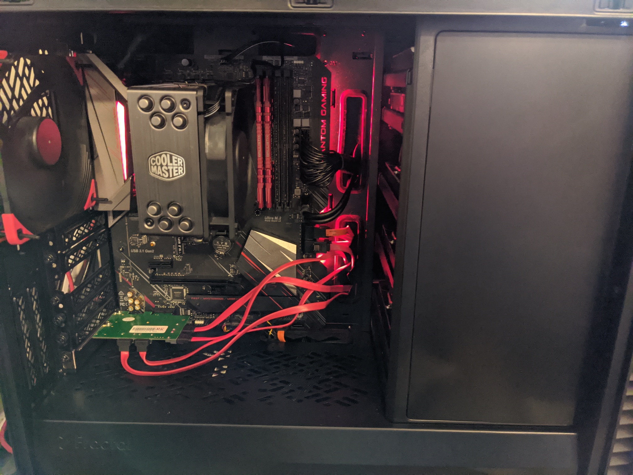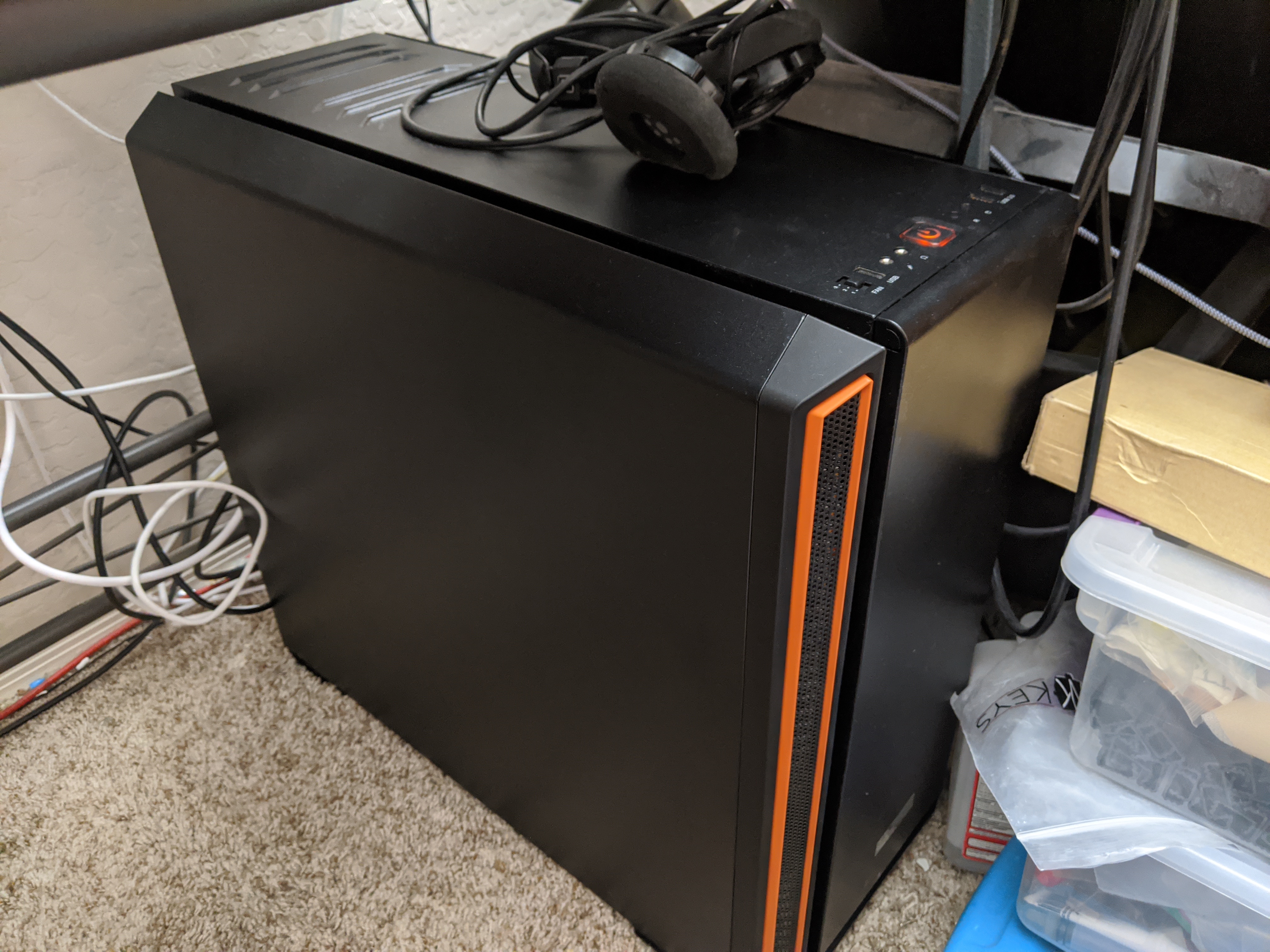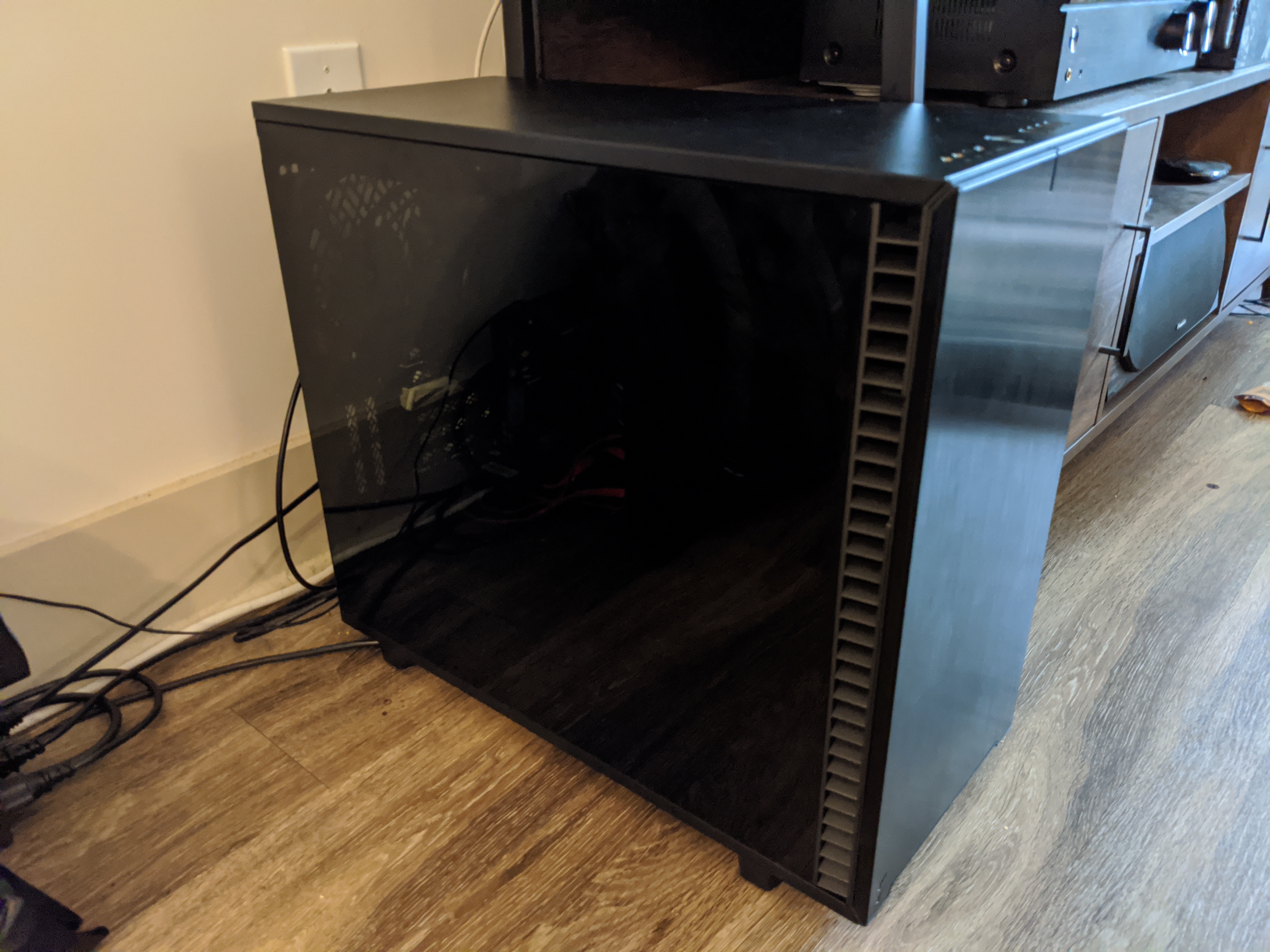 I got the dark tinted glass version of the case, which mostly ends up looking like a mirror finish since the only LEDs inside are on the motherboard. I’m planning on eventually getting a graphics card in there so I can play pc games on my TV, but I need to do more research on how to pass a graphics card to a virtual machine since my main OS on there is Debian. I was considering running Windows as the host and virtualizing my current OS, but it seems like that would be a pretty inefficient solution.