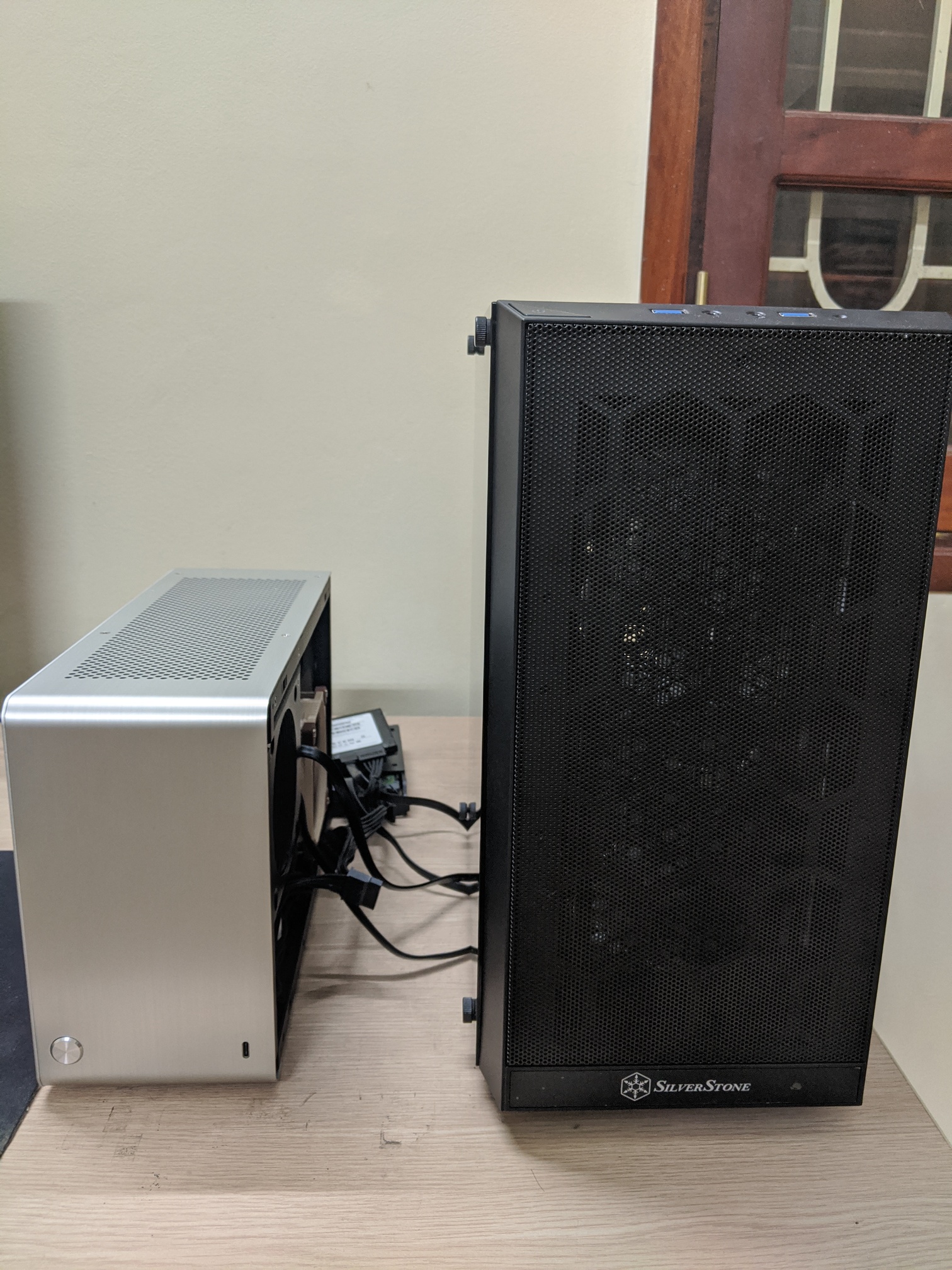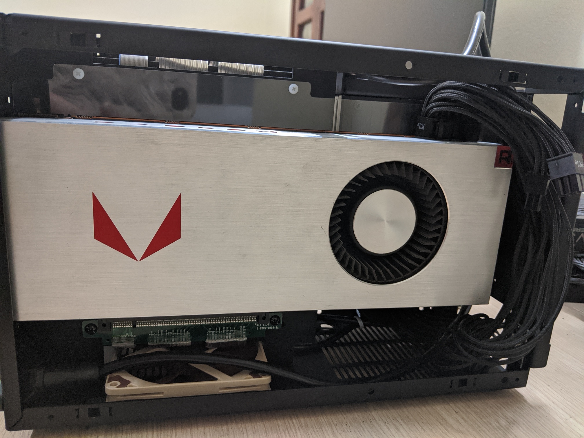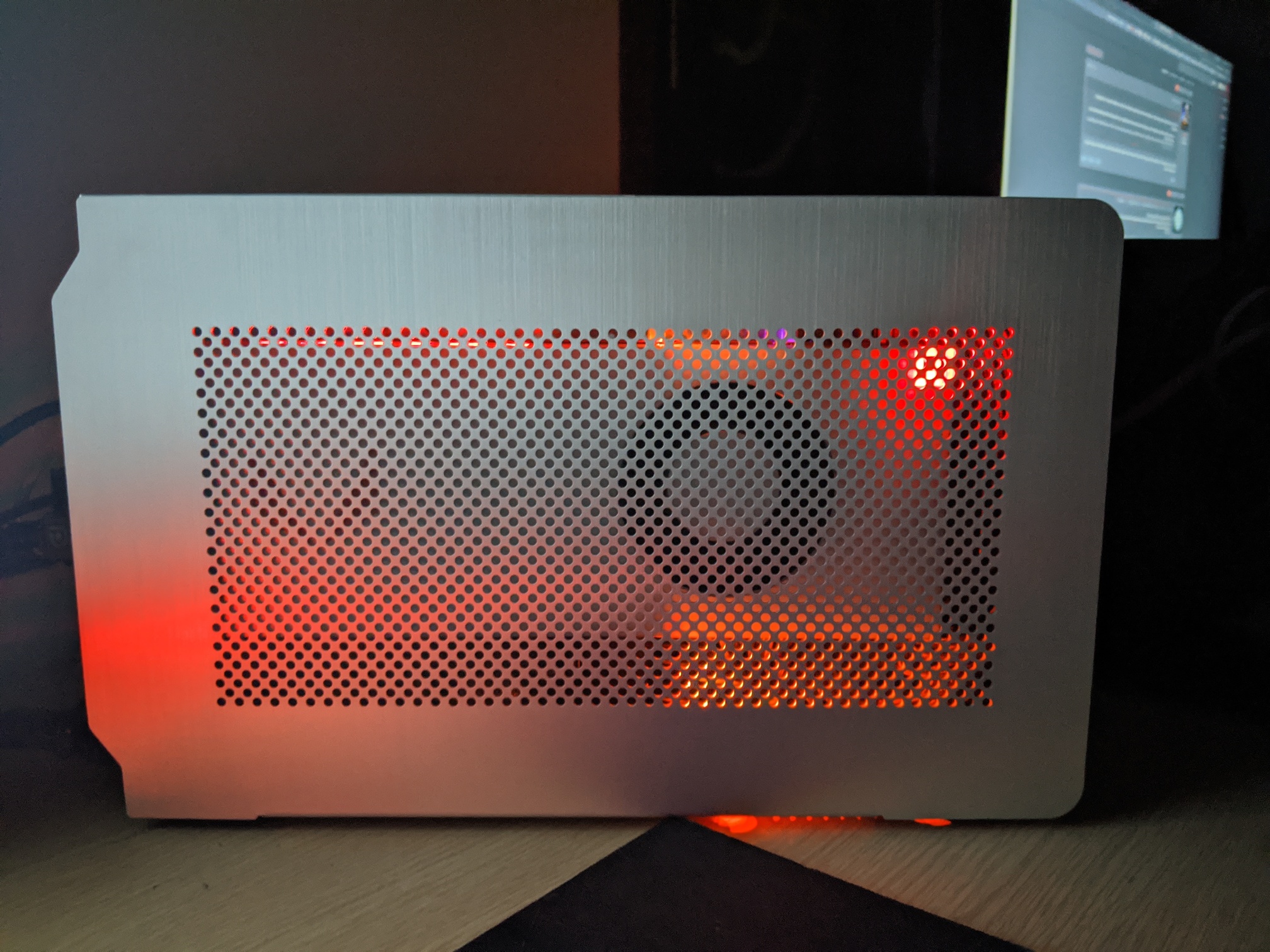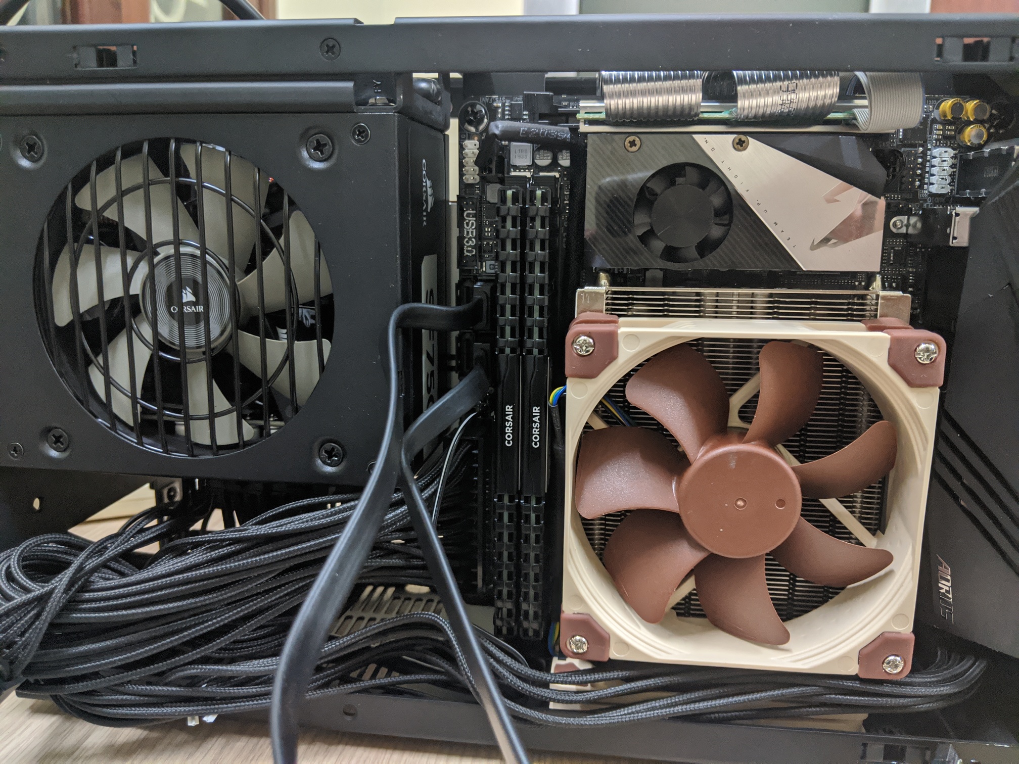 I got the dark tinted glass version of the case, which mostly ends up looking like a mirror finish since the only LEDs inside are on the motherboard. I’m planning on eventually getting a graphics card in there so I can play pc games on my TV, but I need to do more research on how to pass a graphics card to a virtual machine since my main OS on there is Debian. I was considering running Windows as the host and virtualizing my current OS, but it seems like that would be a pretty inefficient solution.