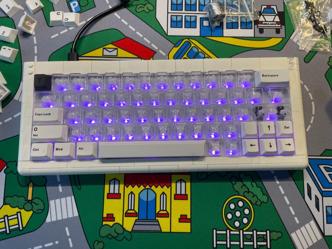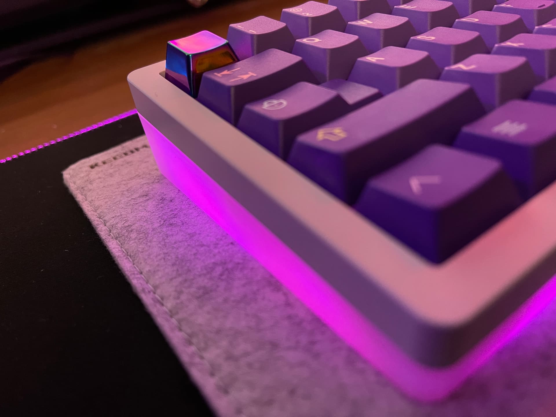 I used Glow-in-the-dark switches and stabs in the hopes I could sneak some black-light LED’s between the switch plate and PCB, but they’ve gone with a large silicone sheet that fills that area in completely. So no joy there right now. As a result I think I’m going to go with some better switches and stabs for a better typing experience. As it stands, I’m having a heck of a time with a couple keys registering more than one press at a time. The backspace being the worst offender at the moment.
