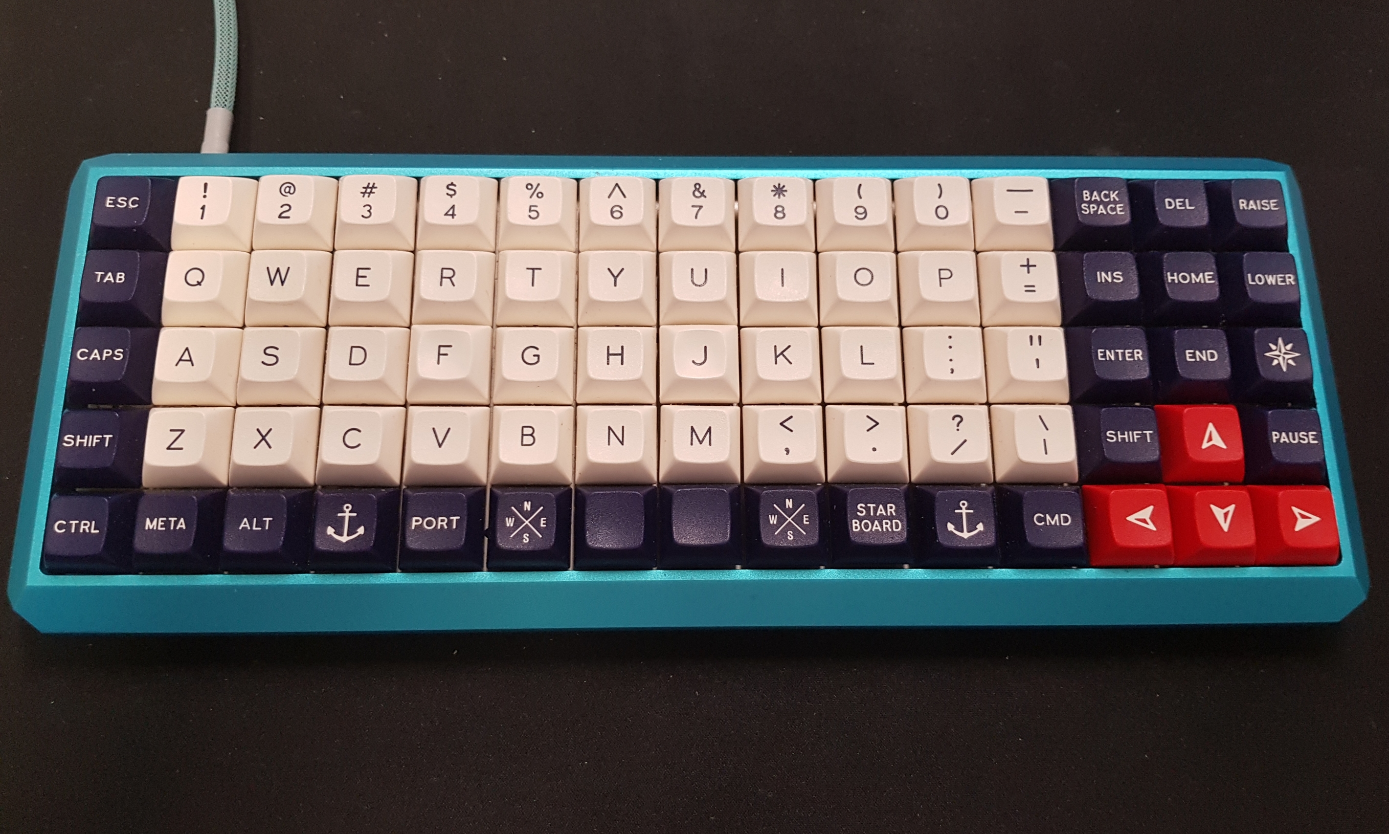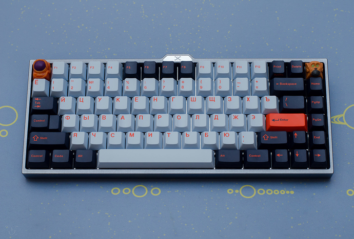 This is my XD75 with Kailh Box Royals and some stretched out DSA Royal navy Keycaps.