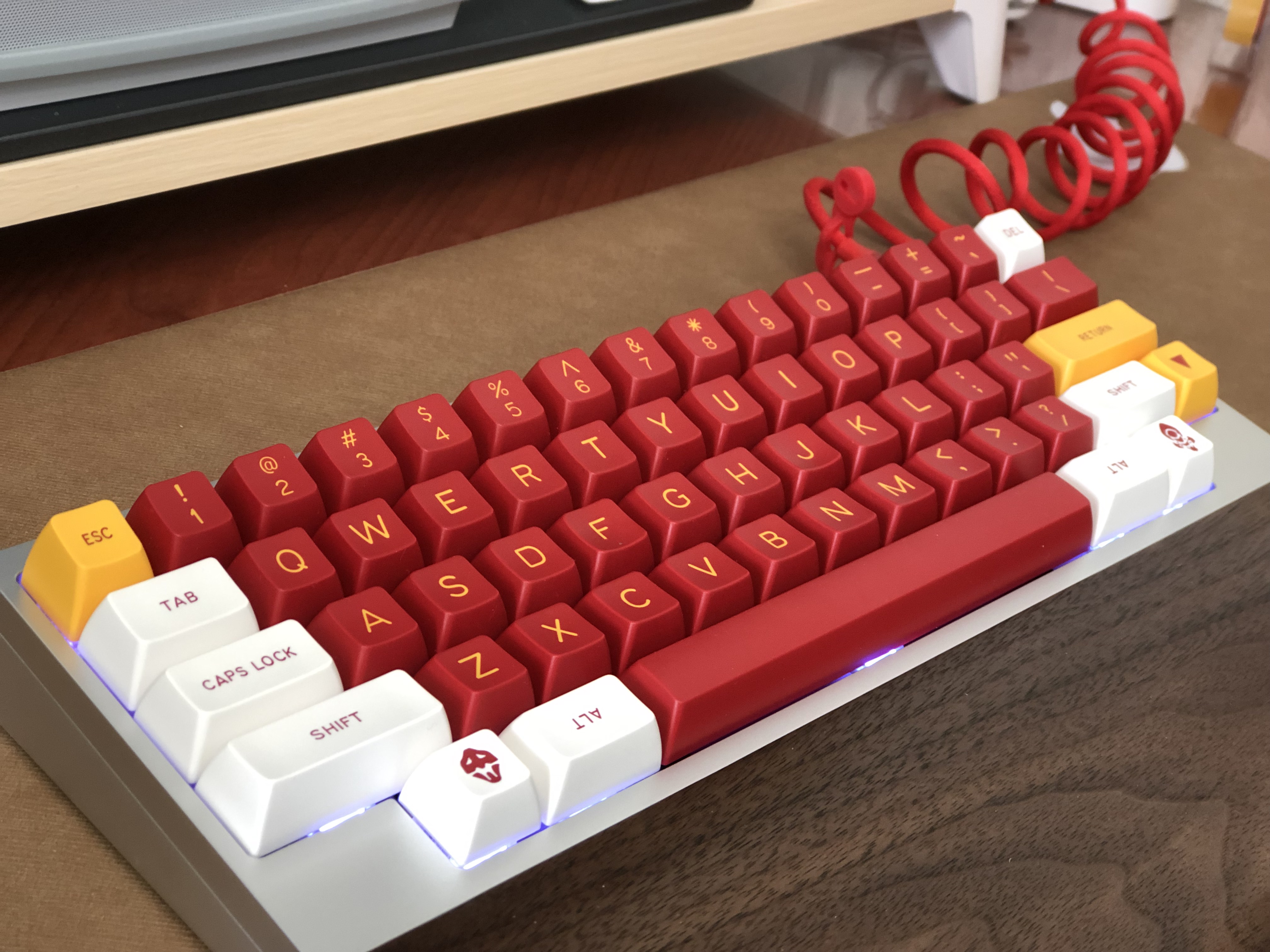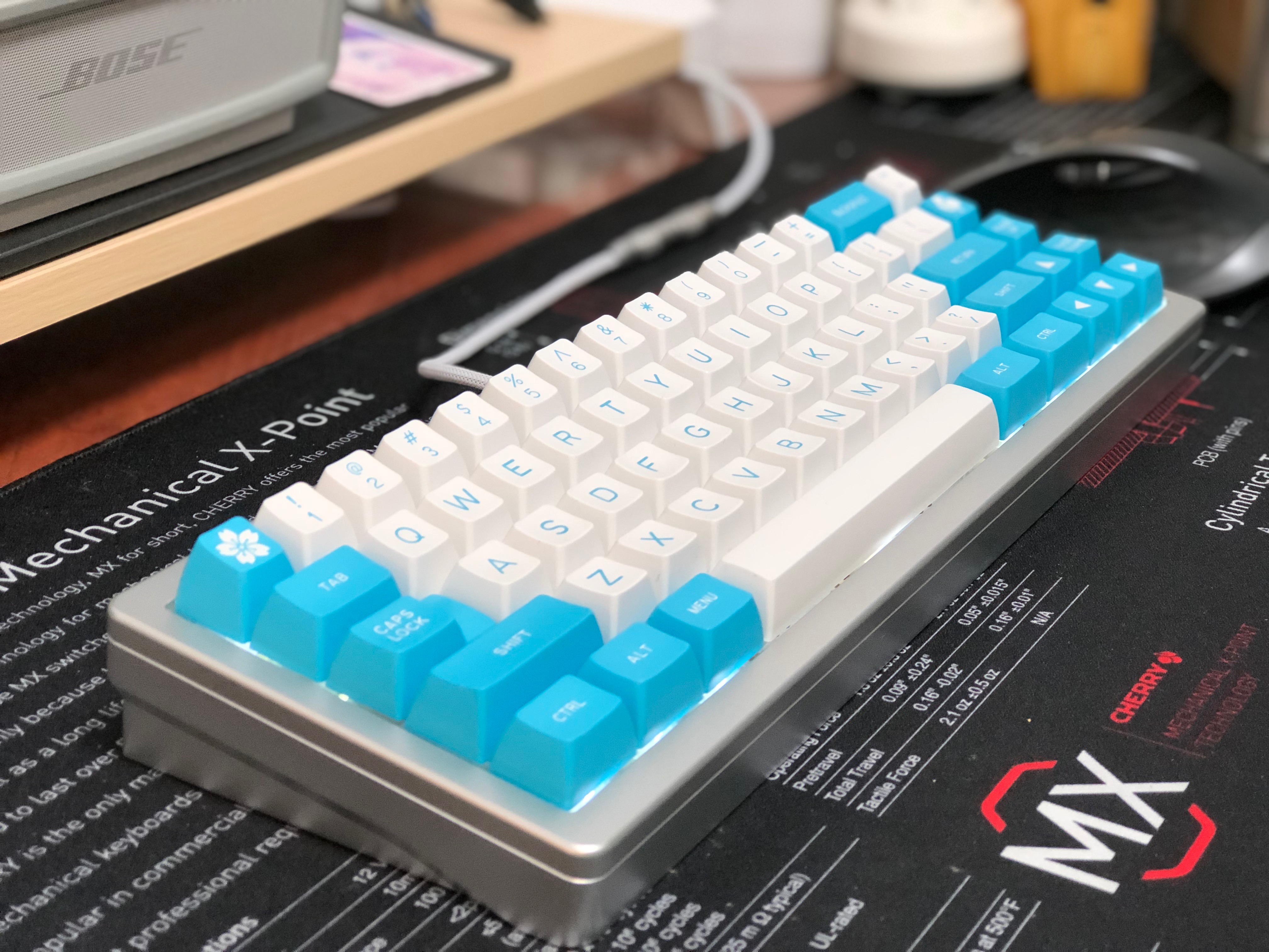 I started with a full size 104 mechkeeb, but I’m settling down with 65% keebs.