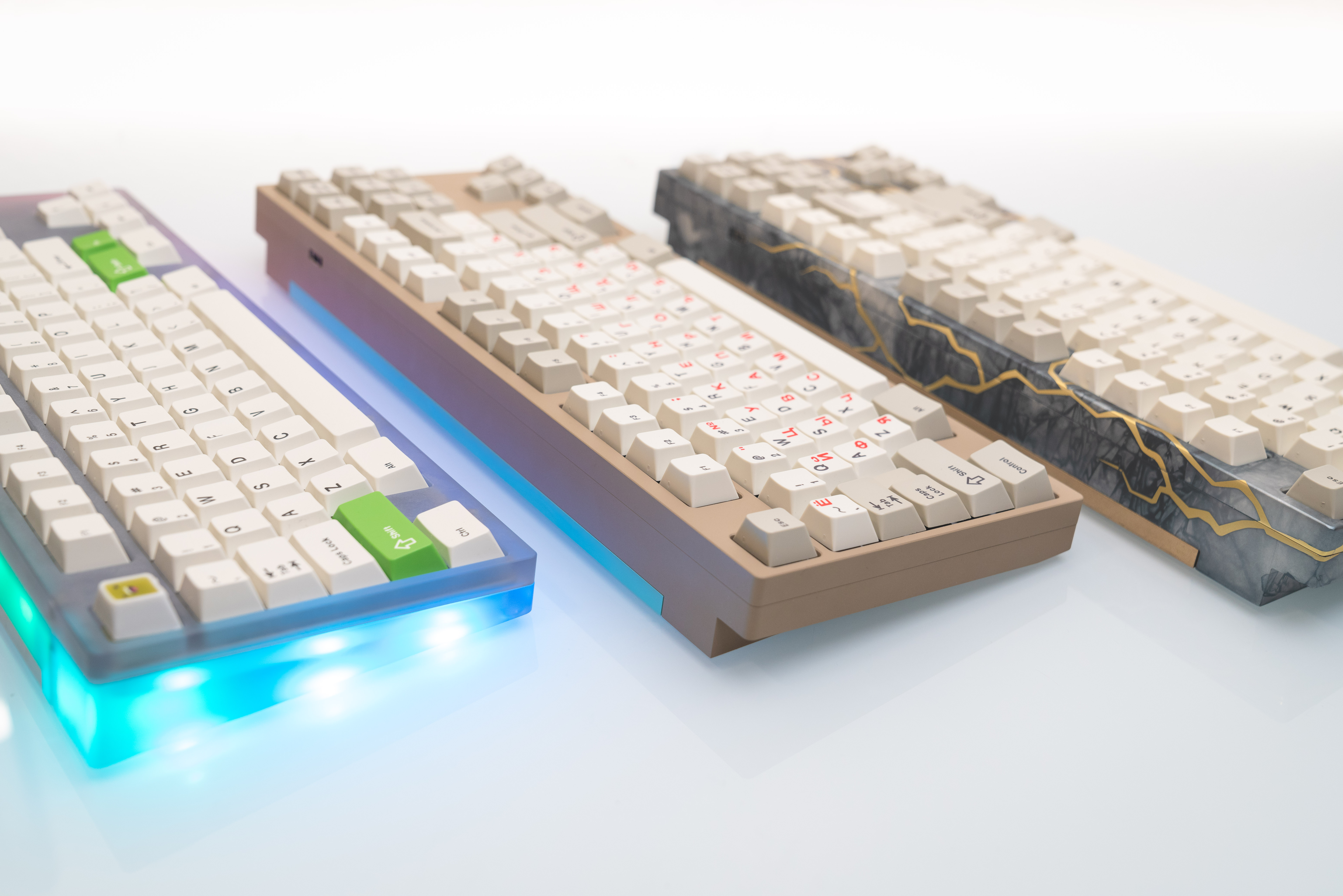 - GMK White-on-Black + OG Cherry WoB ISO-DE keys