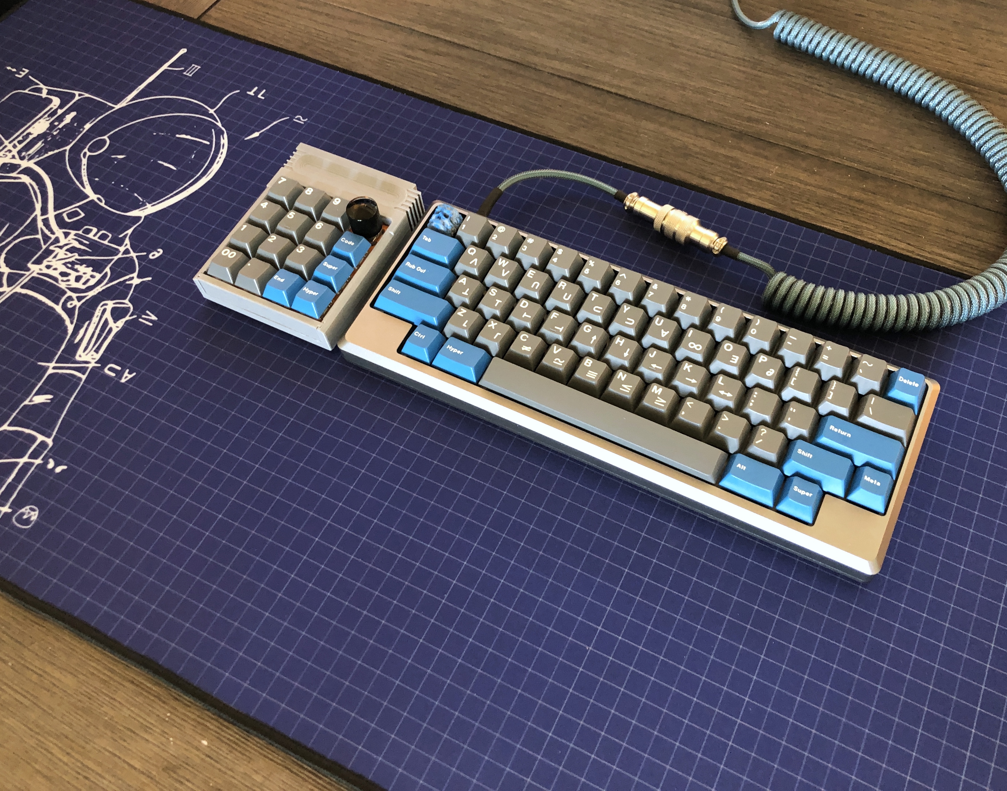 I like what you did with the delete key. Having a delete key on r2 instead of r1 is my biggest hangup with HHKB layout. Never thought to just have a 1u delete key at the top