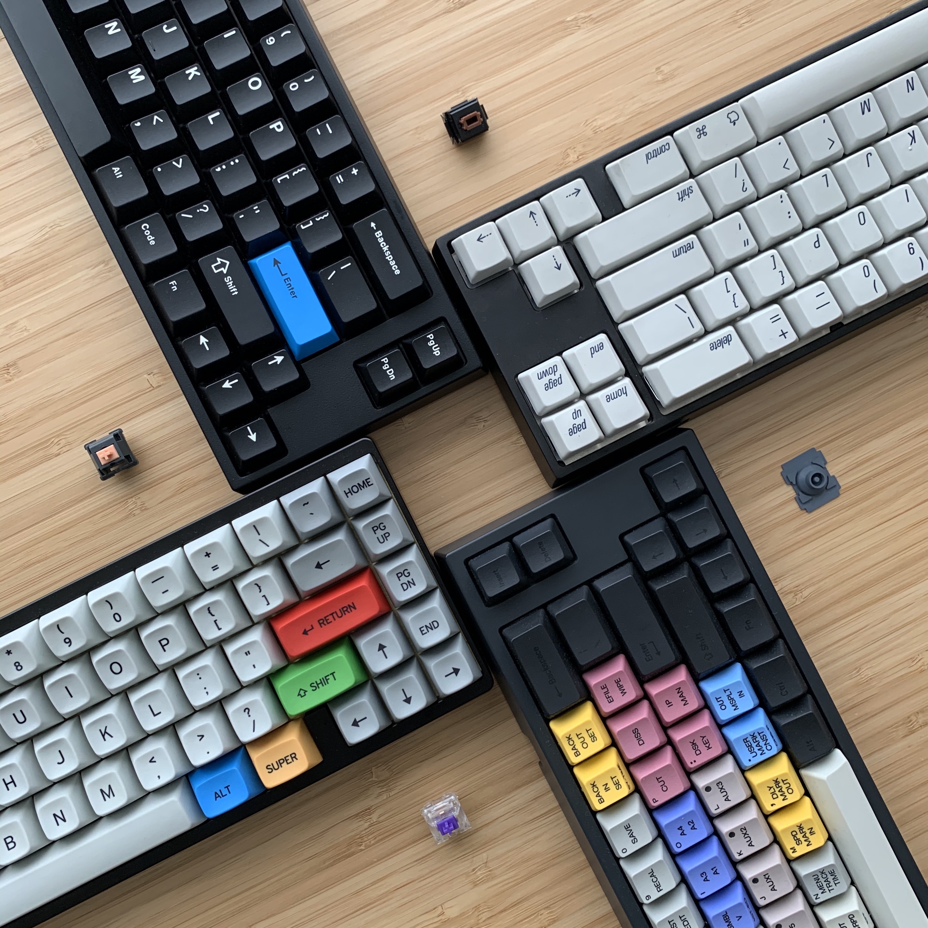 A mix of Hako Box Royal Clears, regular Box Clears, Trues and Violets to help my fingers feel the best as I type, going from that intense Royal bump to that butter smooth Violet bouncing off my pinkies.