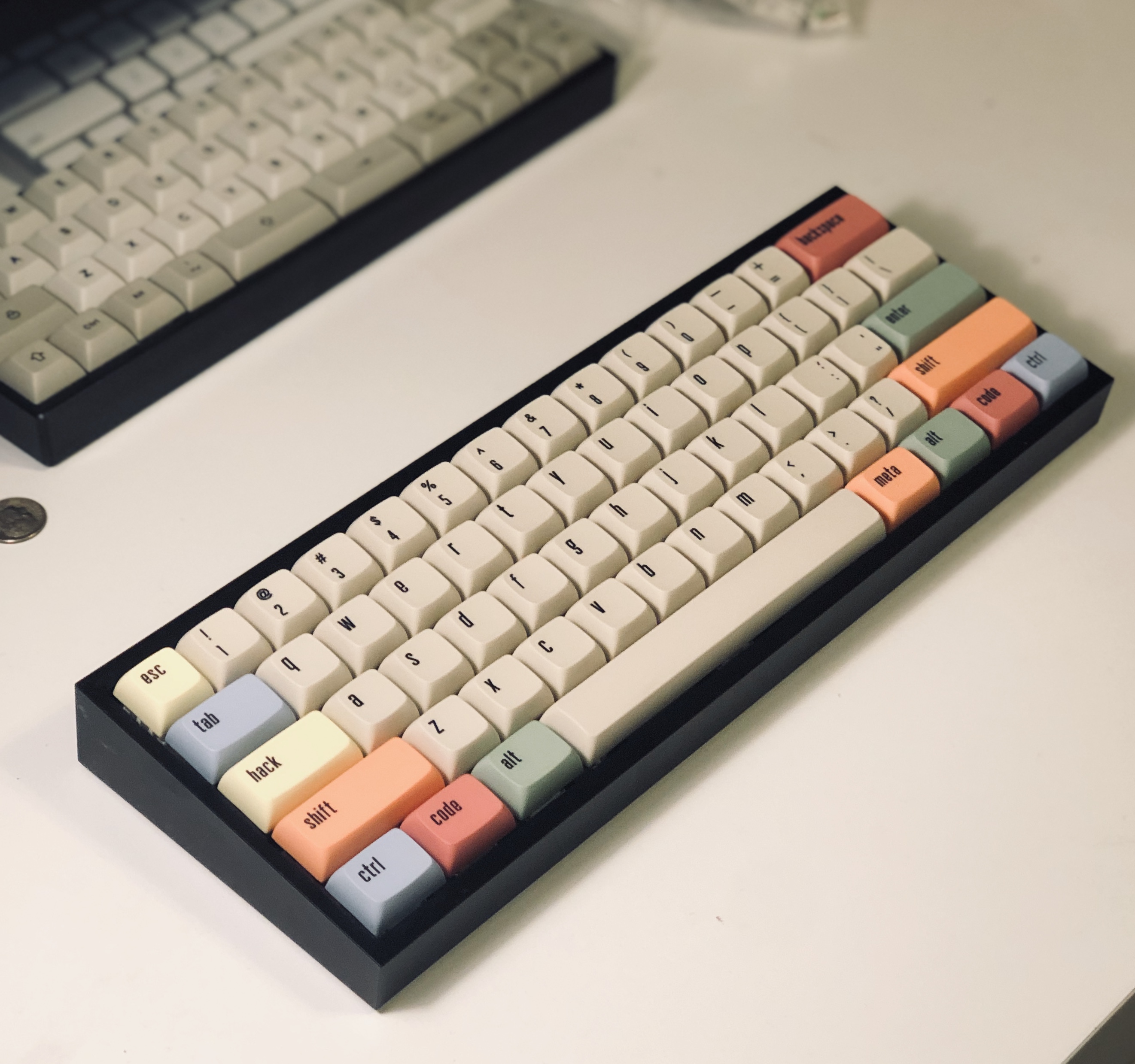 I just got these keycaps today but overall I am very satisfied with this build and look forward to using it as a quiet and super-portable board for cafes, in the office, when GF is sleeping, etc.