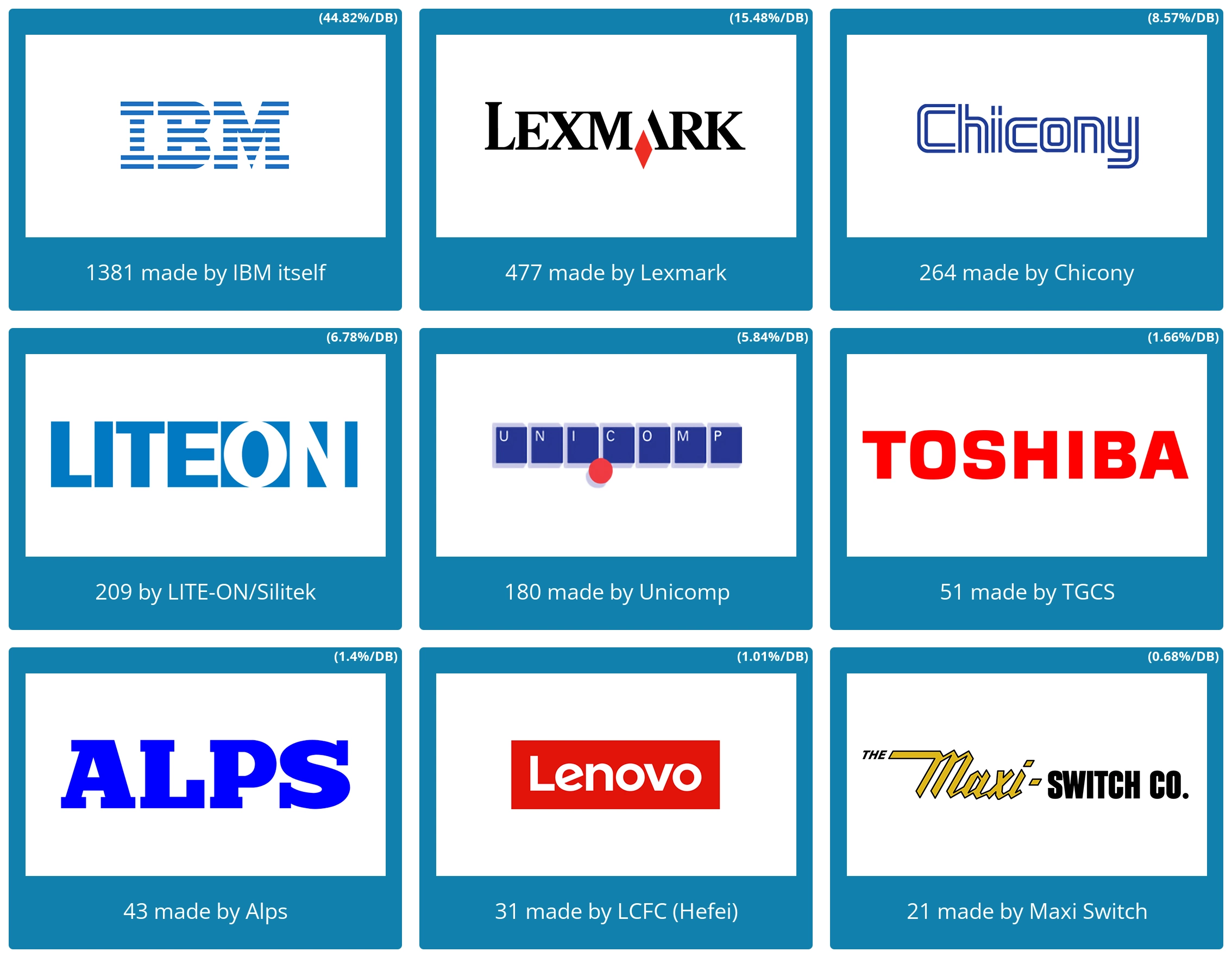 I’ve used data from it to present some cool stats on IBM and family keyboards in a series of infographics, giving us a picture of the nature of IBM’s keyboard legacy and what it produced.
