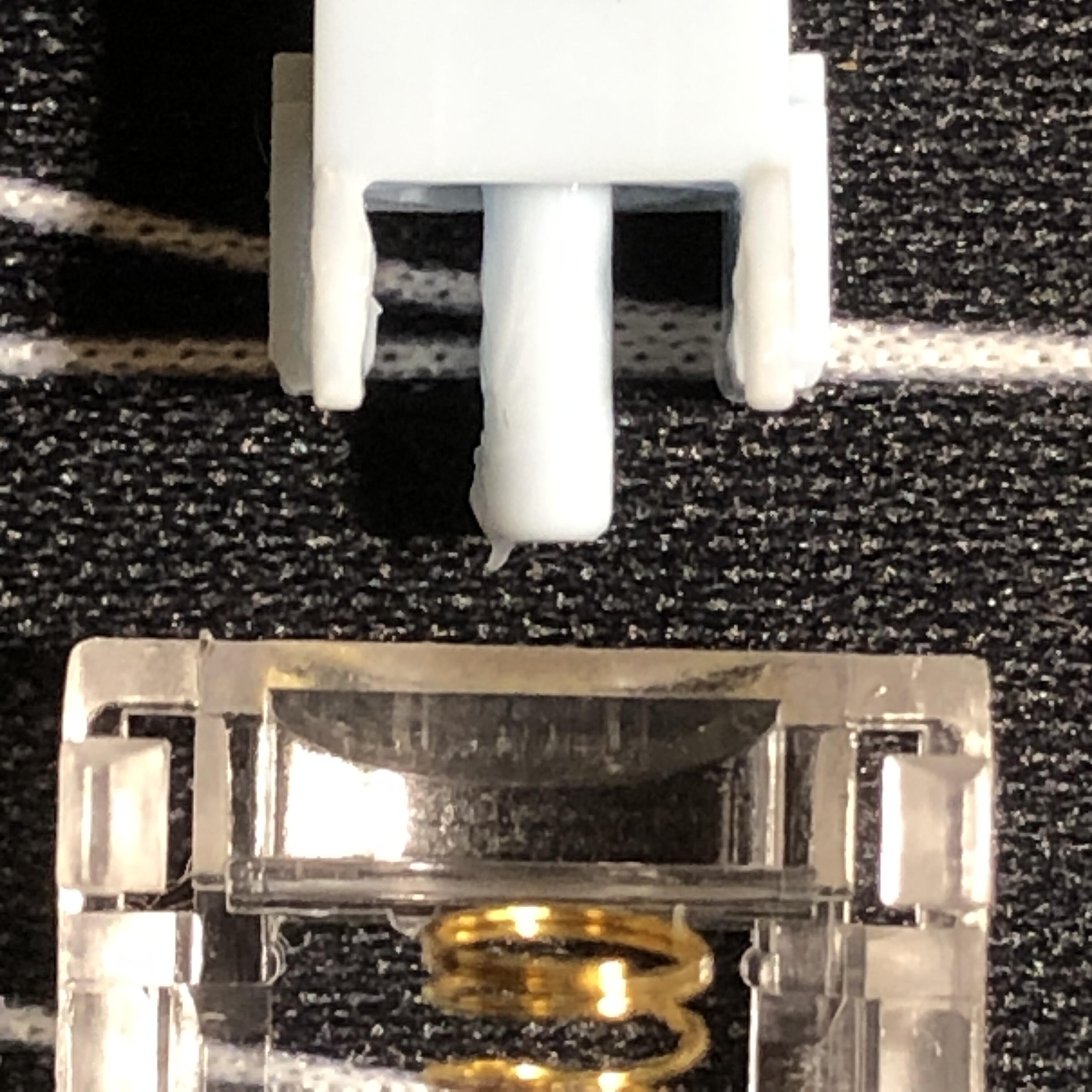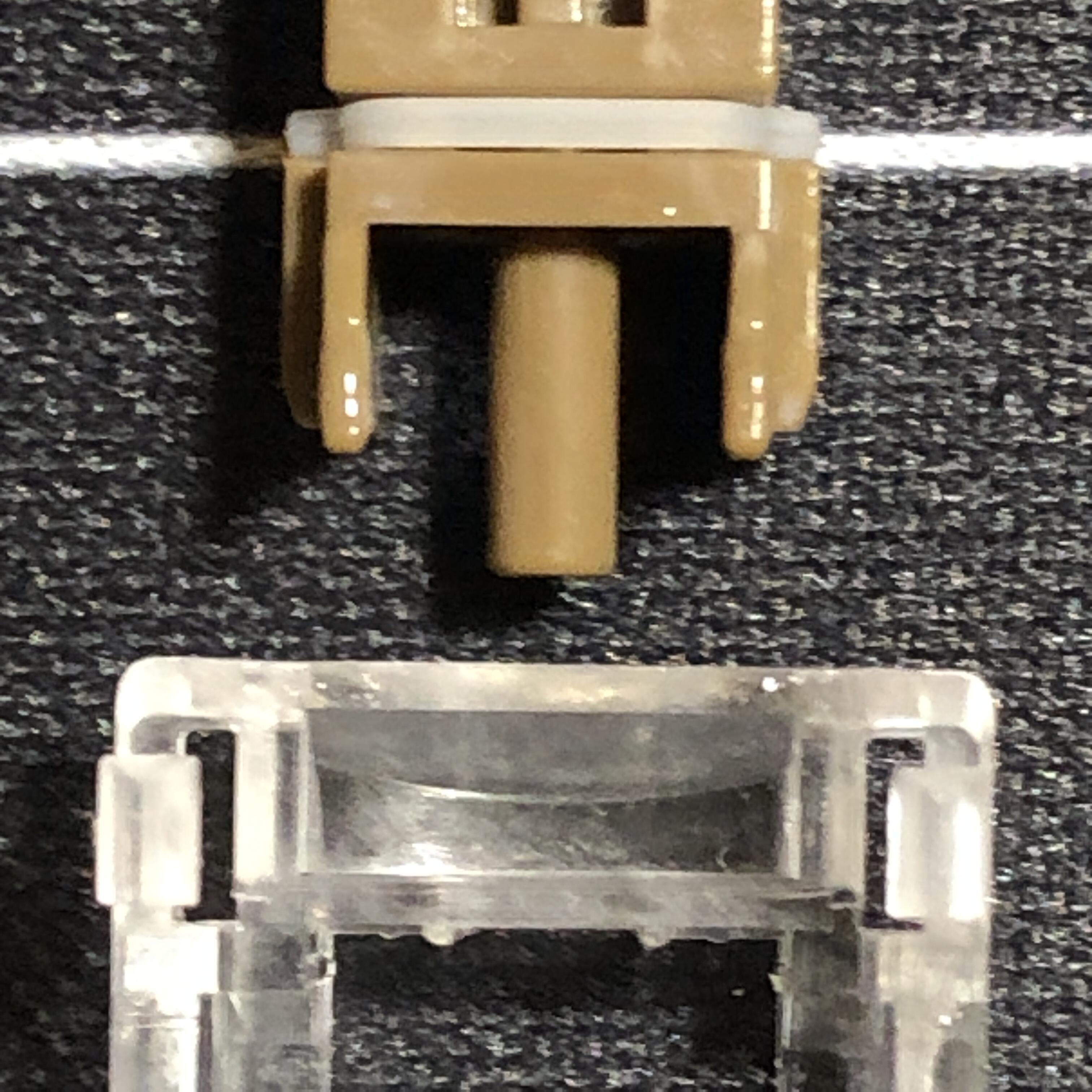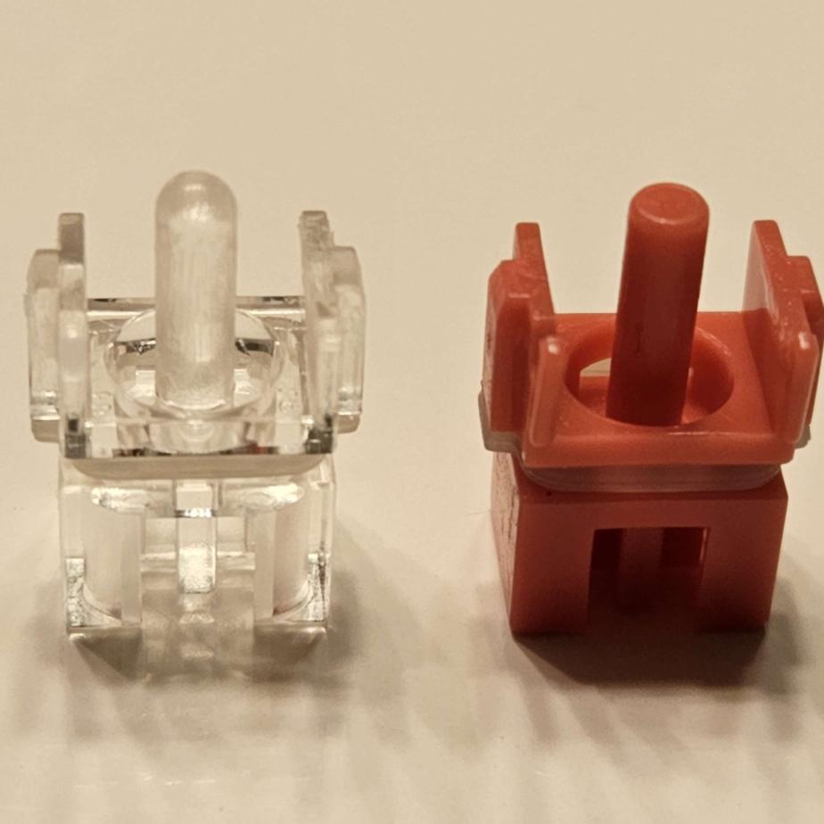 Softer parts are more challenging to shape precisely. Different manufacturers have handled this in different ways and some issues exist only on some switches. The main thing I’m getting at here is “flash” - those little unintended flaps on injection molded parts that come from material getting into the seams of the mold. Stems that use injection molded pads tend to suffer from less consistency and a lot more scratch thanks to those little flaps sticking-out into places like the slots where rails slide. Looking at you, Cherry & Gateron (that means Zeal, too)