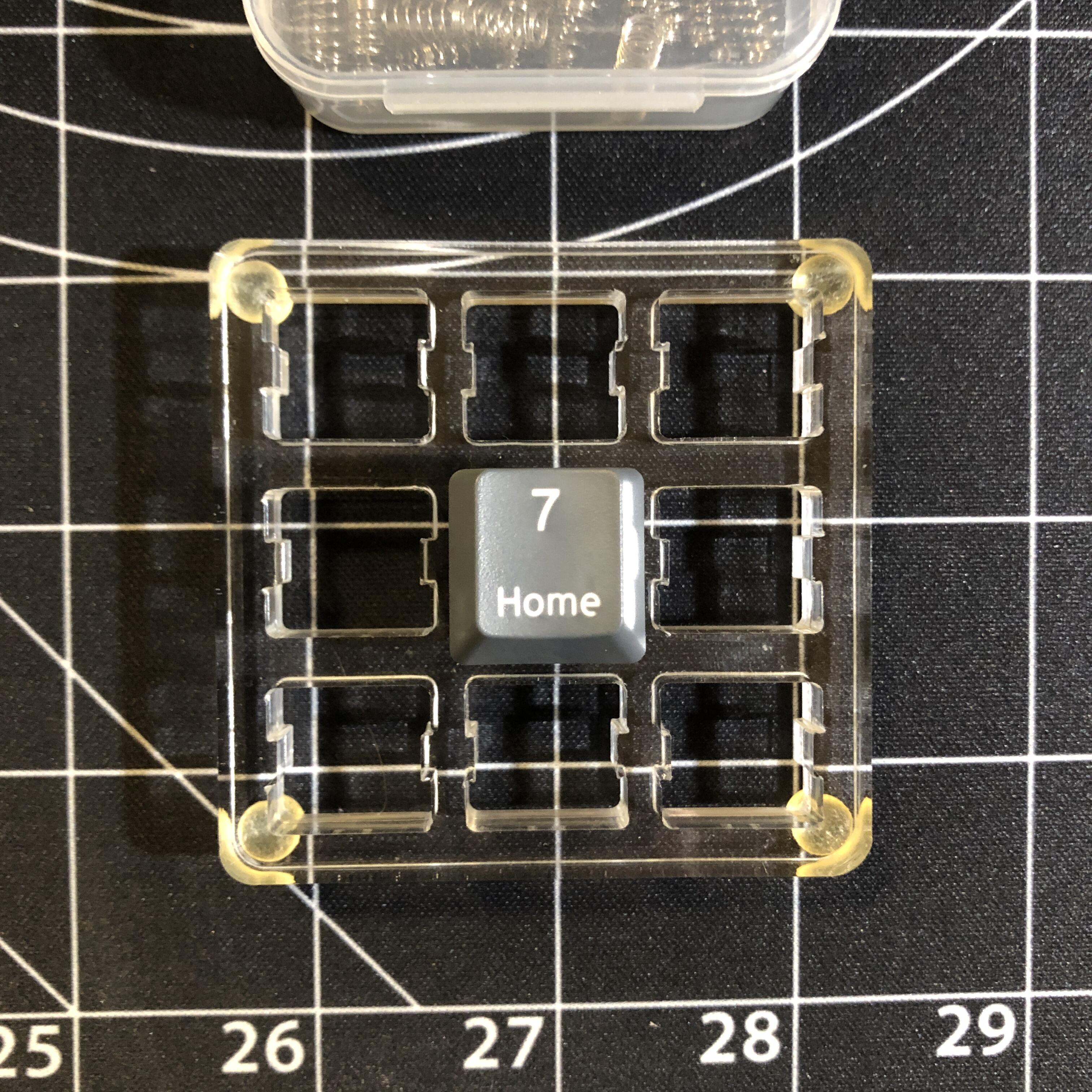 I recorded these with a phone and in this tester in the middle slot, with a Ducky (OEM profile) numpad 7 key. The phone was close, about as far as that box of springs.