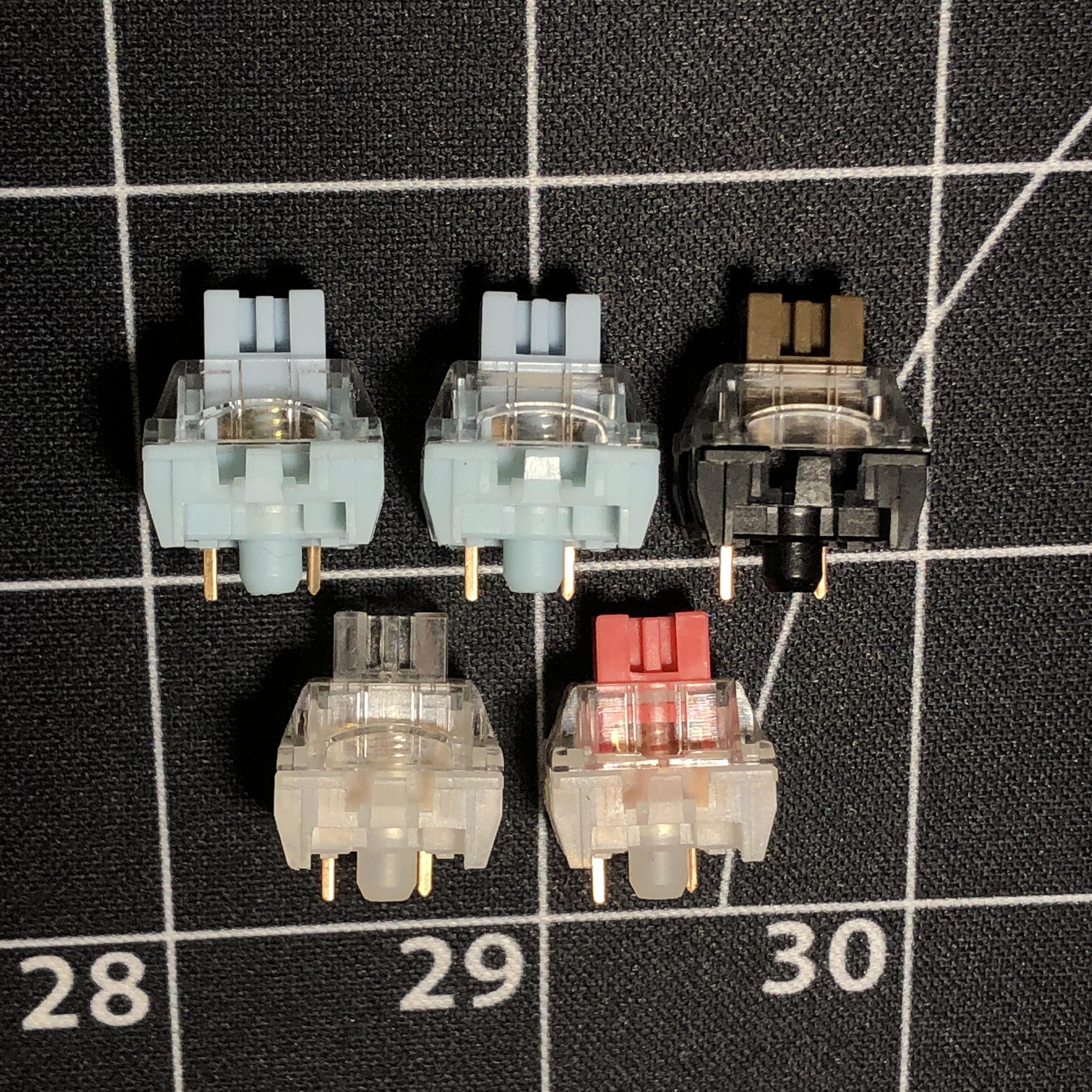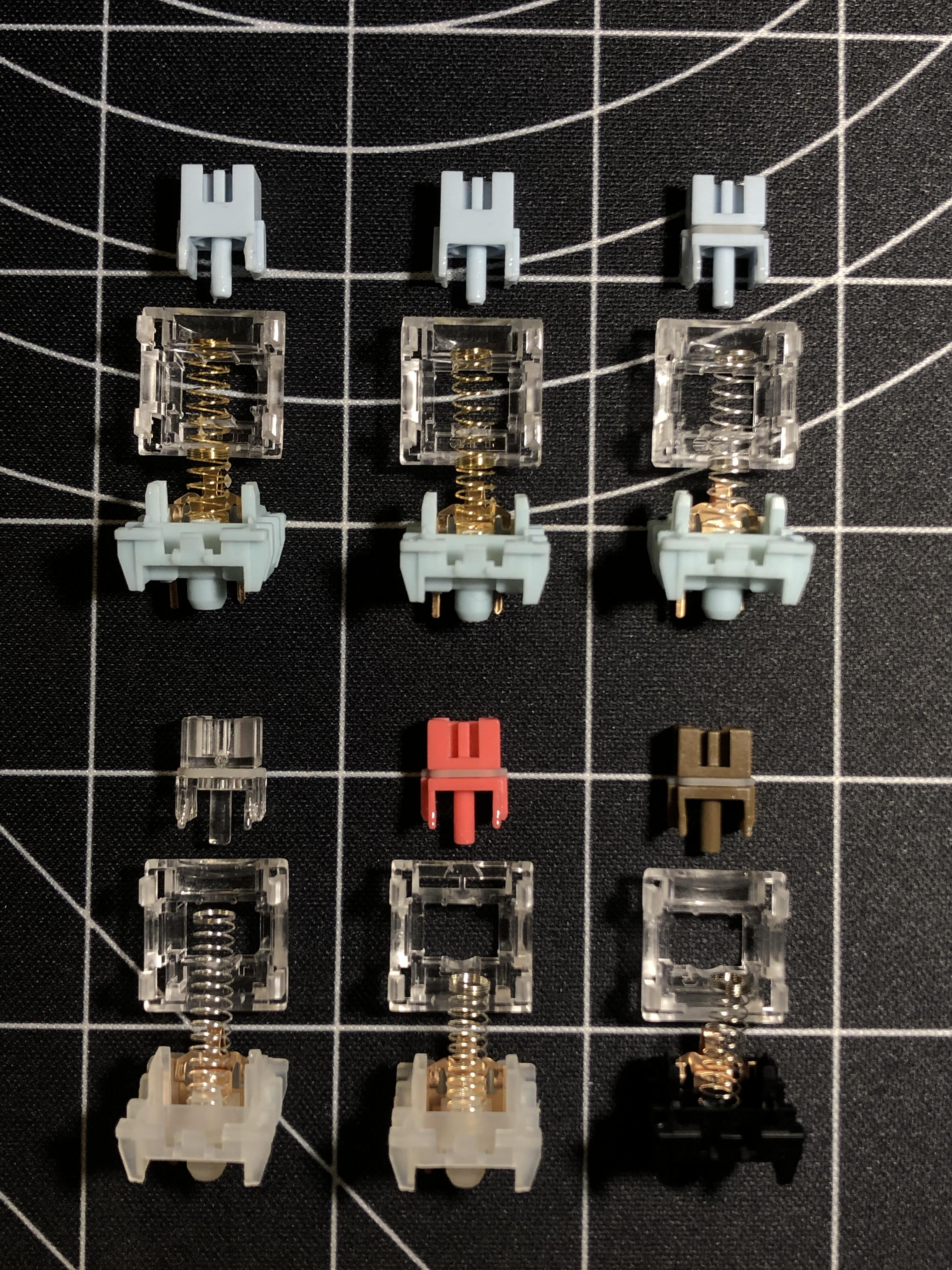 Seriously, the springs are the worst part of that switch. Once you replace them with good, lubed aftermarket springs, they noticeably improve. The stock springs are very, very crunchy and somewhat pingy. As well as not being as consistent as Spirit / TX.
