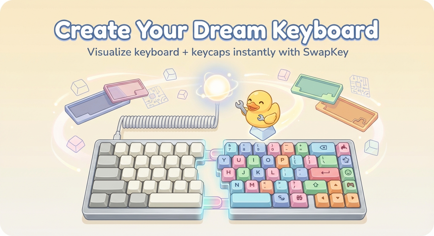 SwapKey on Duckeebs lets you mix and match keyboards and keycaps to see real-time mockups. Pick a board, swap in different sets, and see what works before you commit.