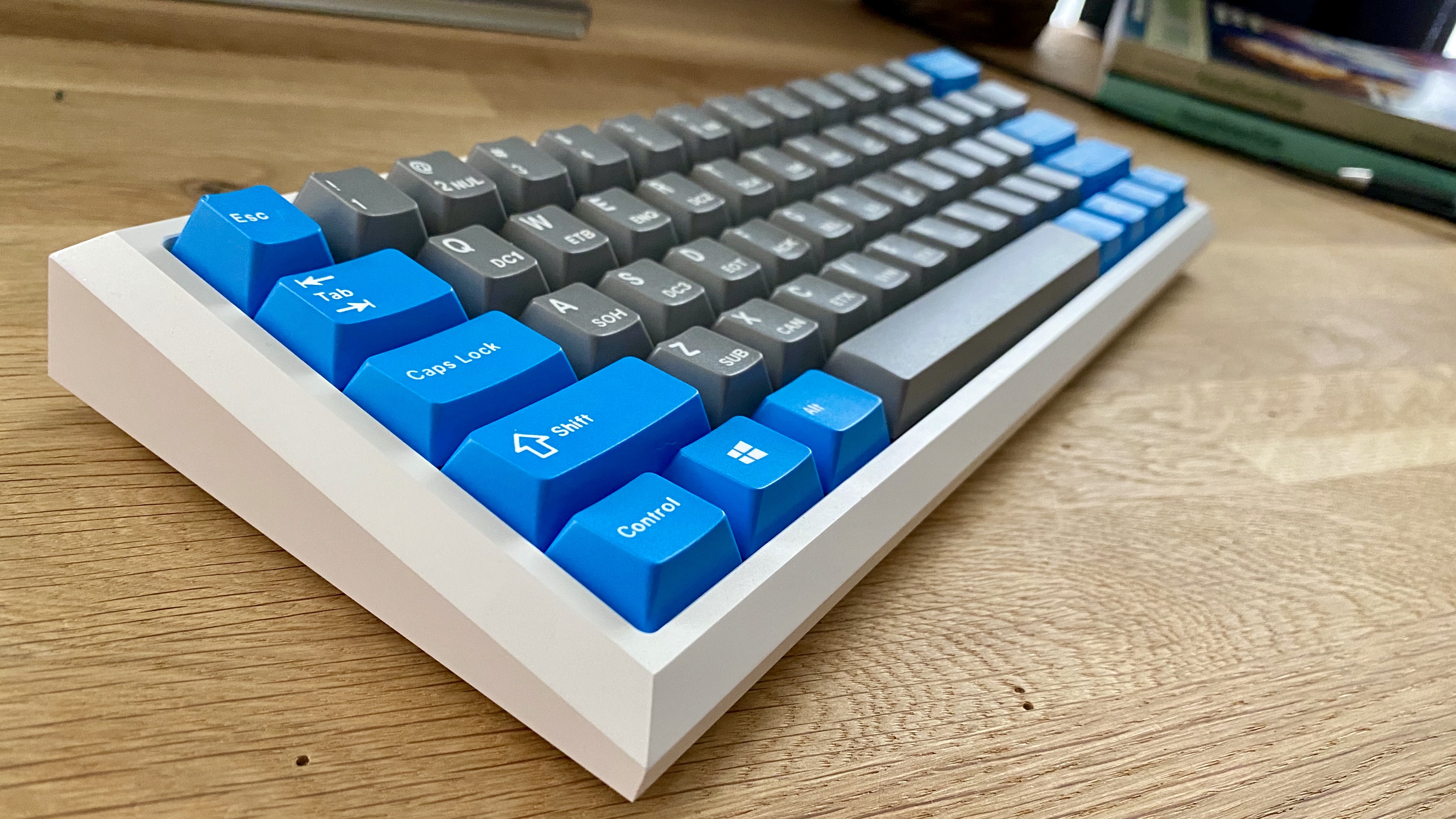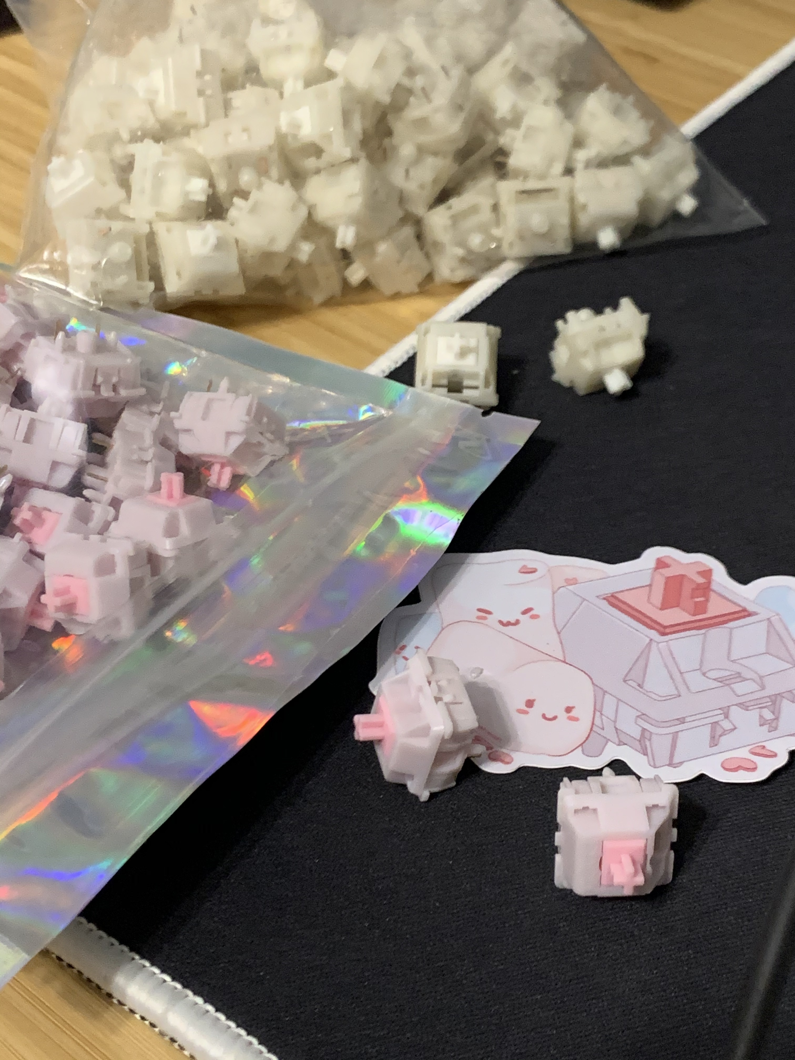 Also got Thic Thock Marshmallow switches all the way back from November of last year. JWK recolor with no lube and a nice progressive spring. Cool switches, but they need films.