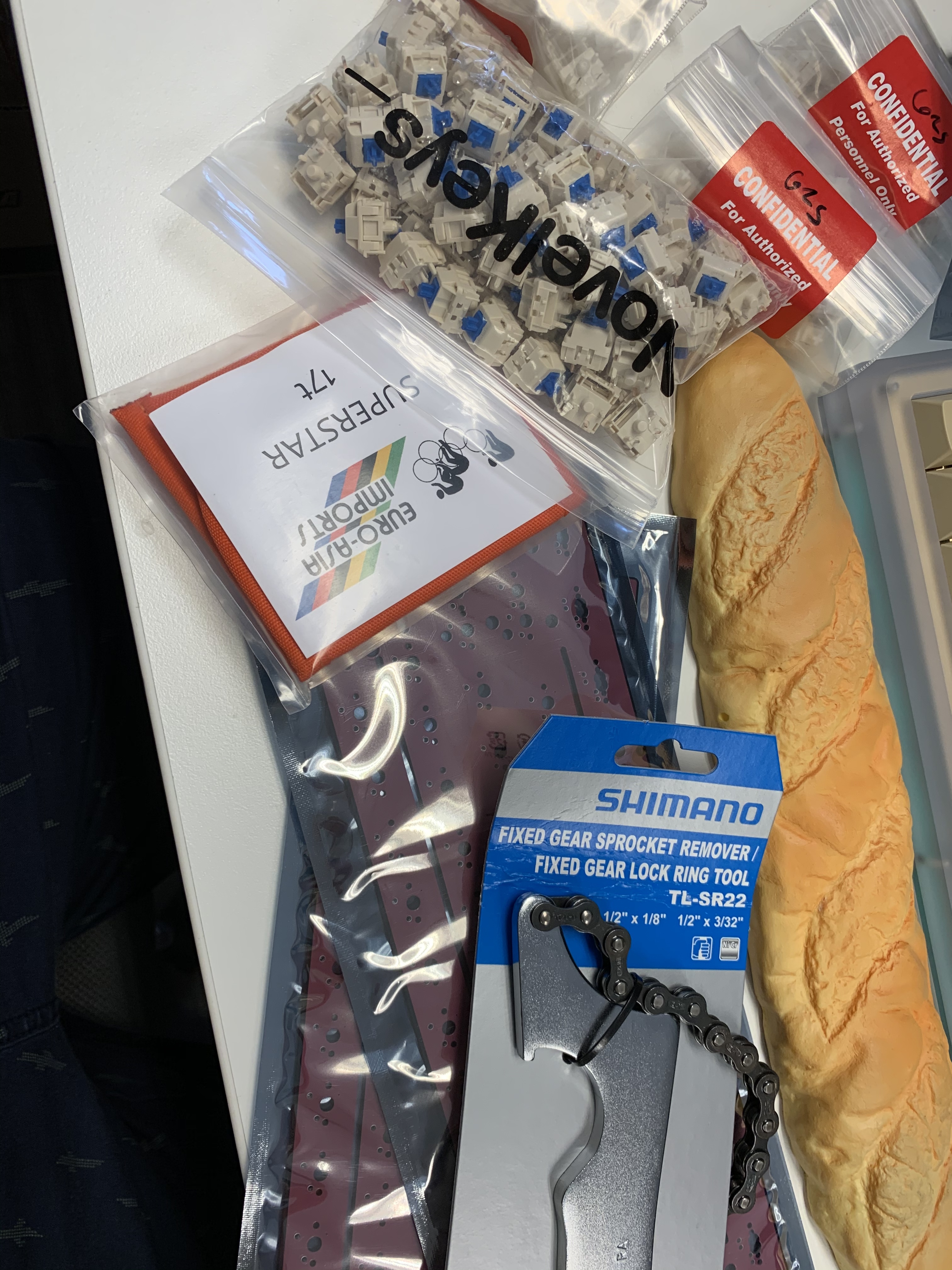 I got a good haul today, haven’t got any keyboard stuff in a while. A couple weird flex PCBs I needed for some upcoming builds, some blueberries for idk what, some gazew bobas because I was curious after y’all seem to like them so much, a single speed chain whip, and a new track cog because the one I have isn’t very round and I think I would be happier with one less tooth