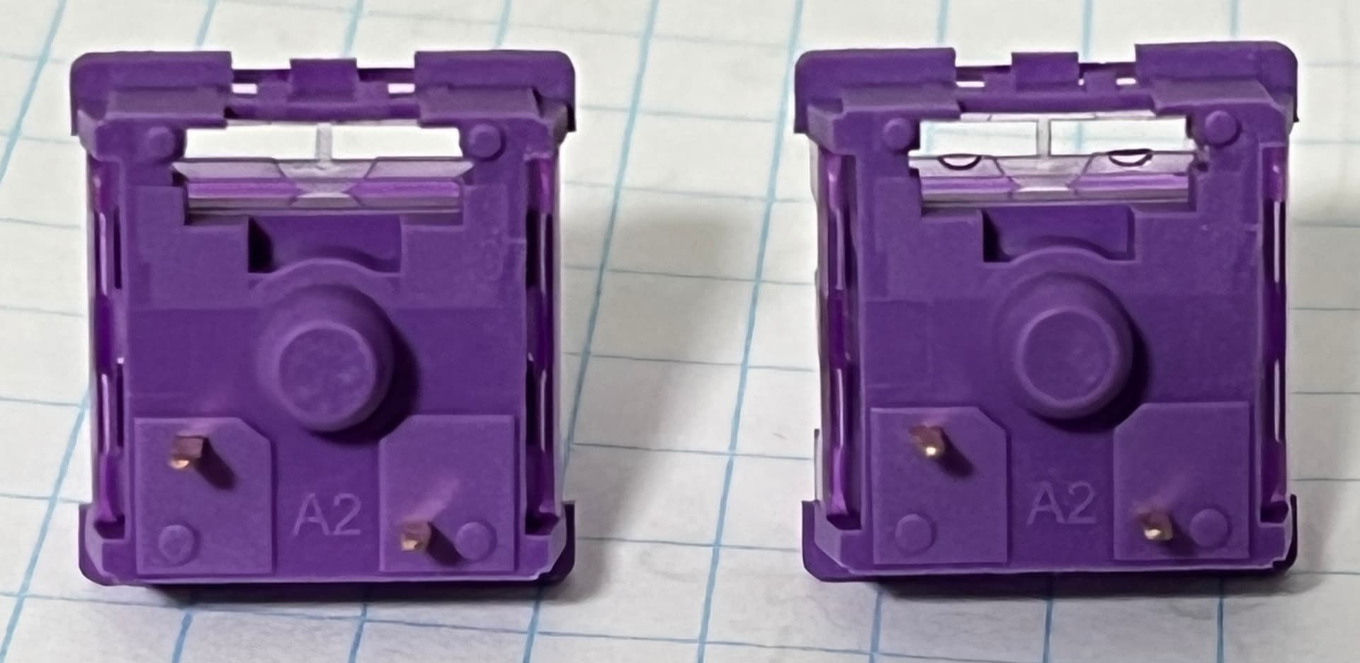 The subtle difference threw me off at first, pulled a random switch from the box and it sounded different, luckily I found 1 small change in the mold (under the LED cutout), so I could identify them as I just threw them into the jar with the rest ot the Akko LPs I had left.