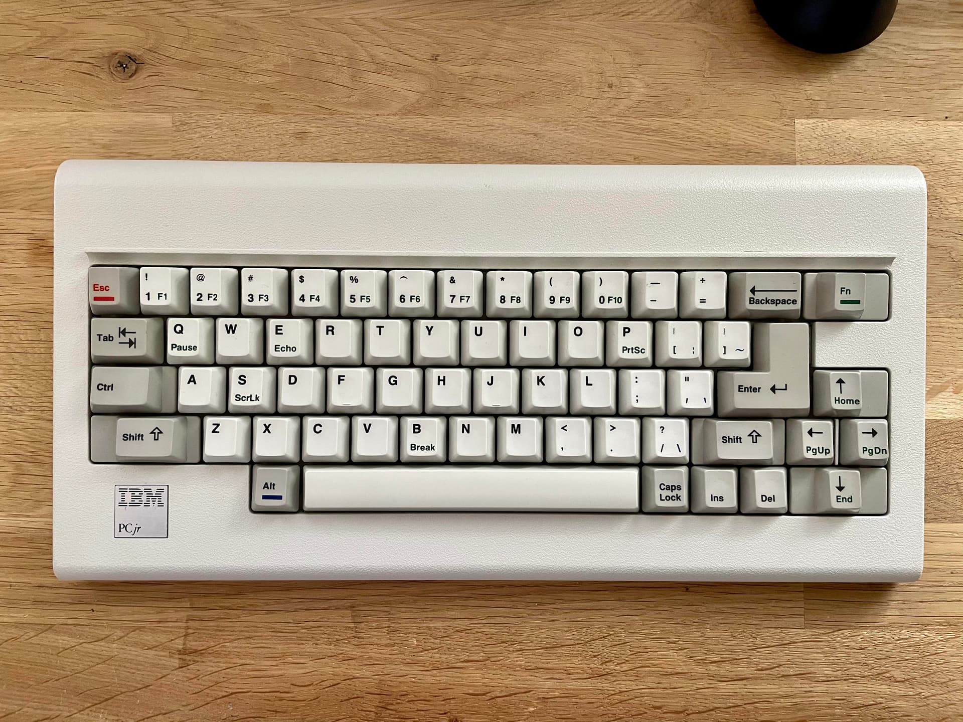 If you look at the original IBM PCjr keyboard, the keycaps have smaller, thicker legends. They also missed on including Red Escape.