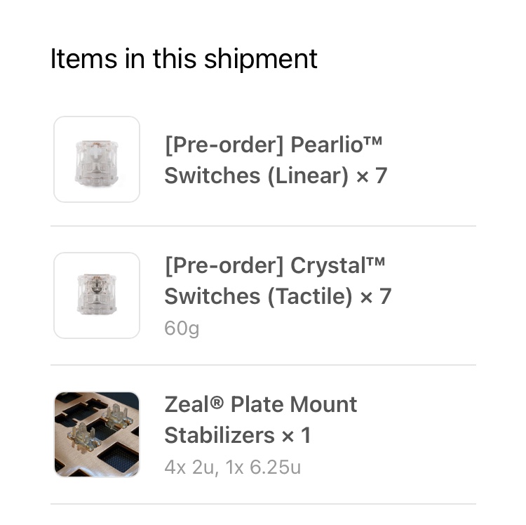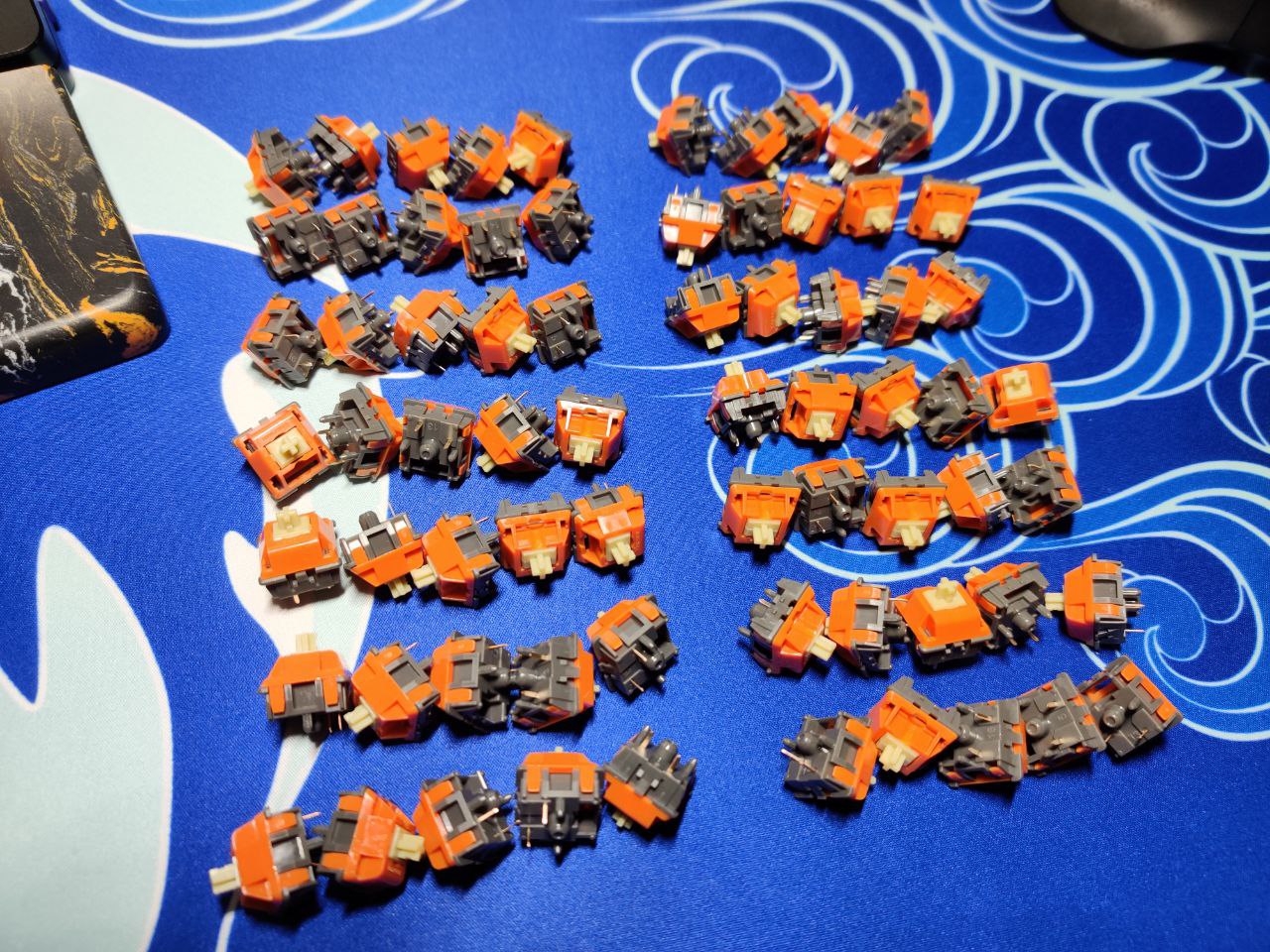 Got 110 Gat CJs from Dangkeebs & 5 TTC Tigers from AliExpress in. The CJs seem to be a let down to me, just testing in the hand at least. Sure they are smooth AF, but they have a very thin feel & sound to them loose. Gonna have to L+F some of them & give them a whirl in my tester board before I say I don’t like them for sure. The Tigers on the other hand I got because the listing said they were the OG ones that were serialized. Yeah no luck there, they are just the regular production ones. Although they are a pretty good feeling & sounding switch loose. Kinda wish I had ordered my usual 110 pack of them, but they were pretty overpriced on the storefront I used.
