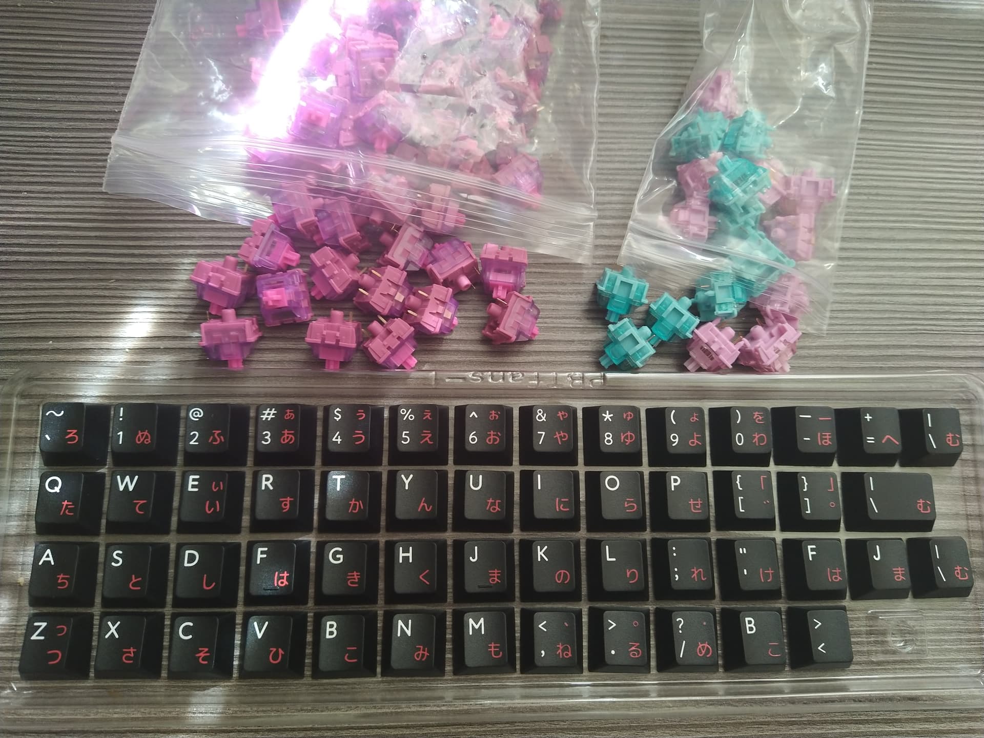 Jwick Ice-Jade and Pink-Jade. Ice-jade has a pretty sharp tactile feel, less rounded than something like a feker panda, or maybe it’s just my heavy fingers that make it feel like that. Pink-jade are quite nice linears. Something about these 2 makes them very silent compared to other JWK switches. Almost as quite as some silent switches, very odd.
