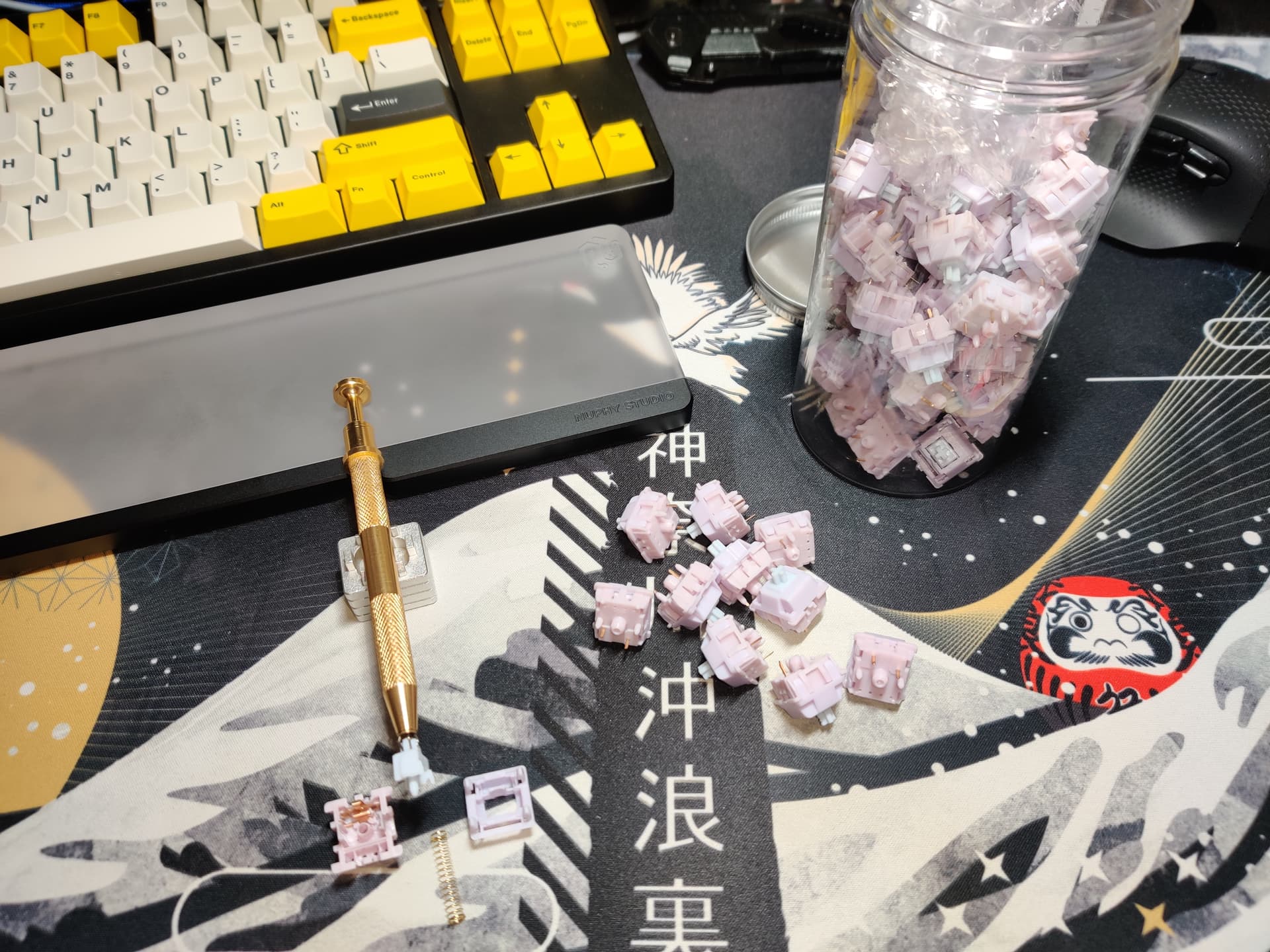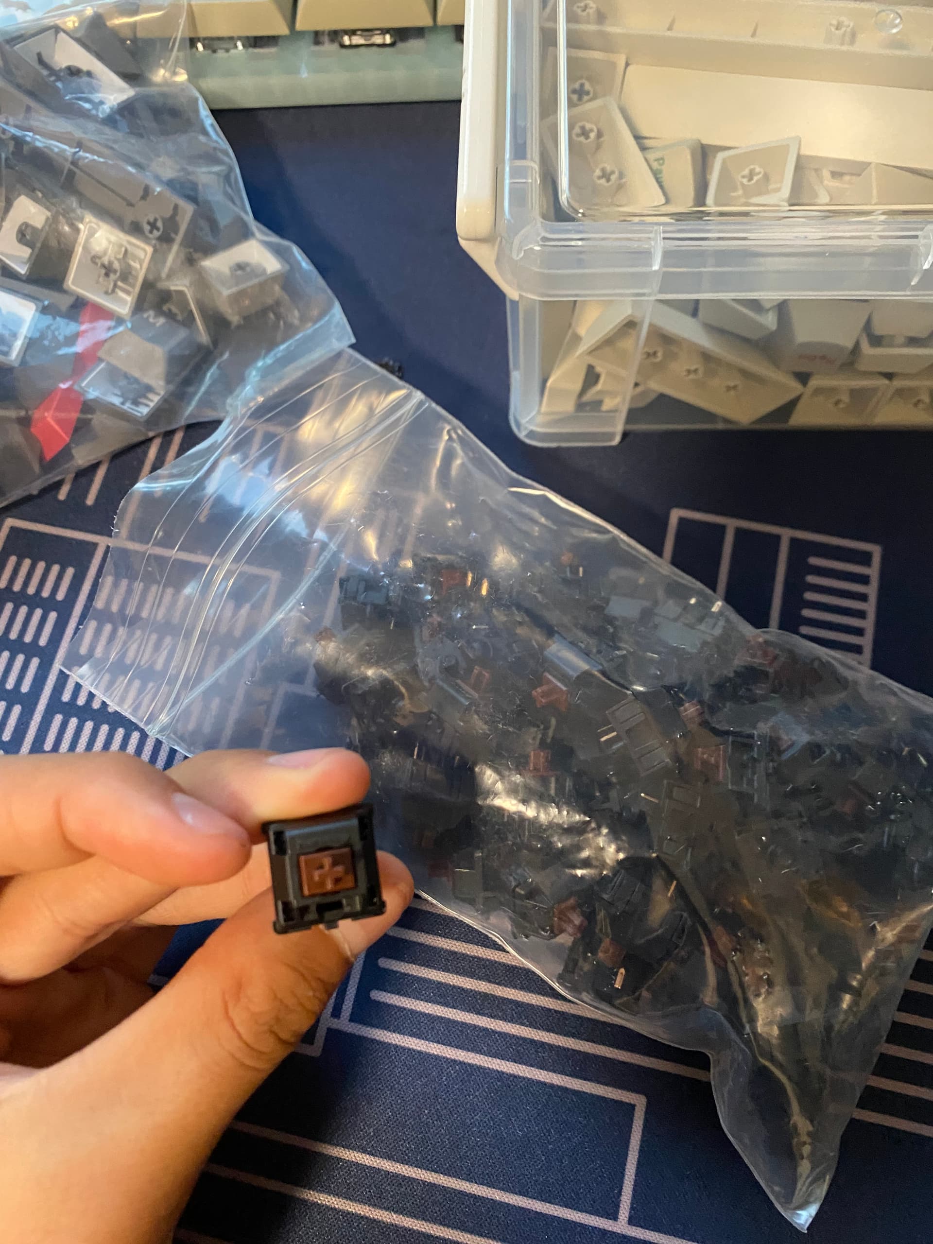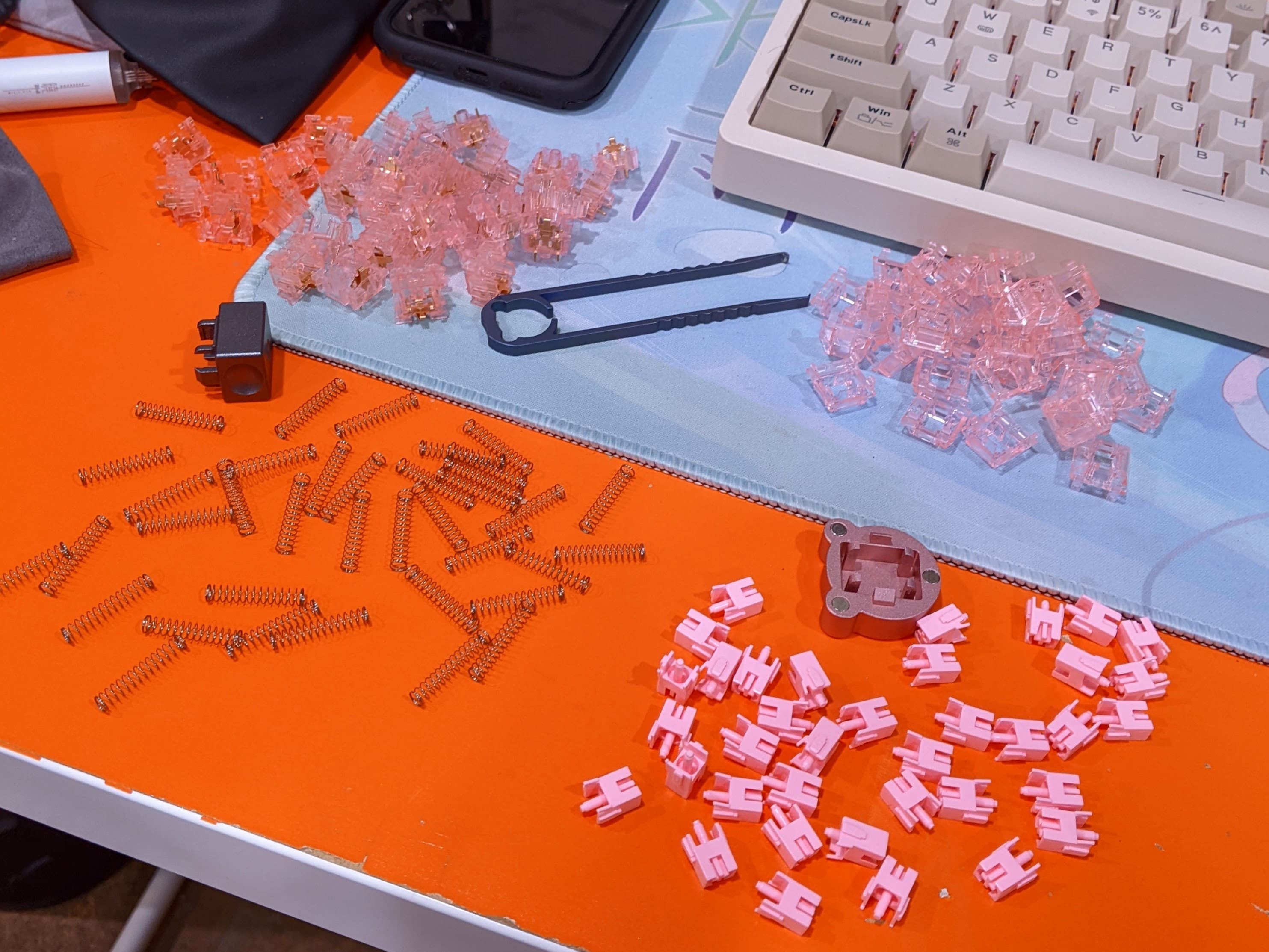Started swapping switches on a prebuilt I have in for review and realized I didn’t have enough Akko CS Jelly Pinks to finish a full size keyboard. The Amazon order came in last night. Spent about an hour this morning dissassembling, lubing, and resassembling the new batch. I’ve moved to only bag lubing springs and rattle jar lubing stems, which is much more efficient than trying to lube every part of the switch.