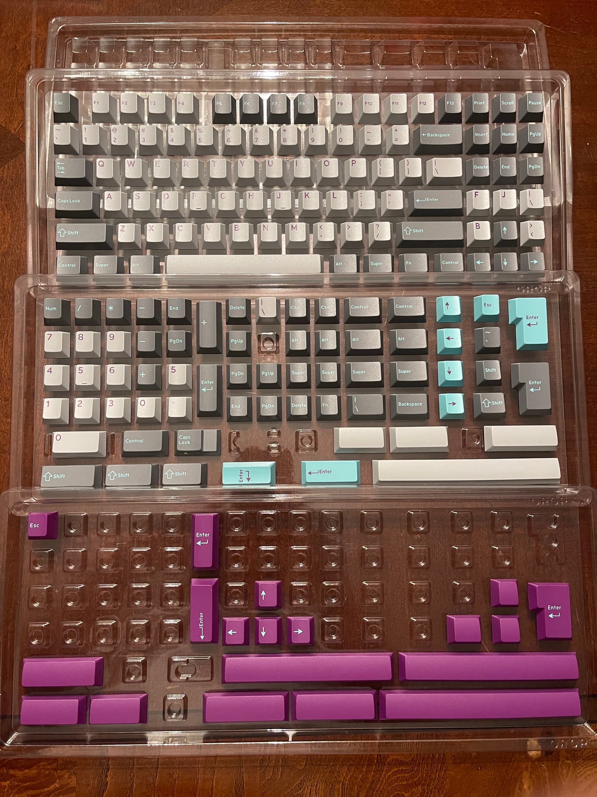 I picked up the purple DCX accent kit to pair with my GMK Hyperfuse Origins set, and while the purple doesn’t look nearly that magenta in person, it’s not a one to one match with the GMK purple. The DCX version does have a touch more red in it however.